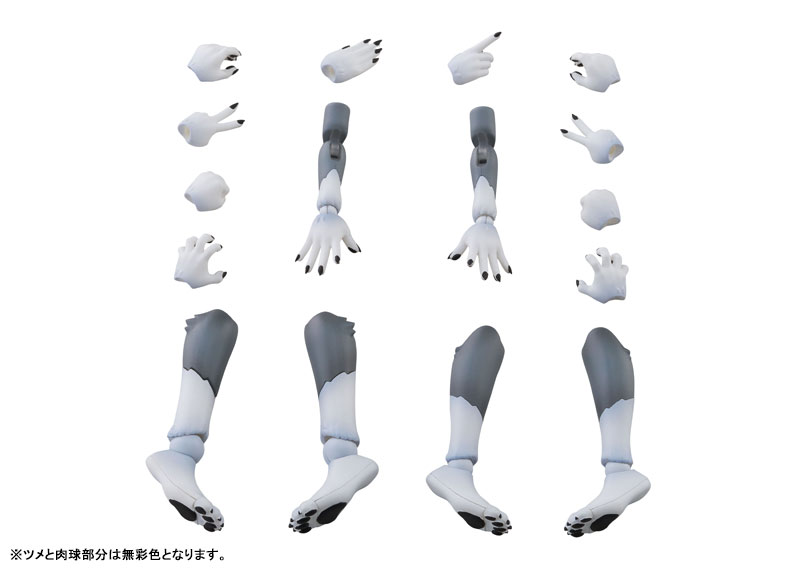 アーム&レッグパーツセットは、新造形の中ケモアーム、中ケモ用レッグ、高ケモ用レッグがセットになっており、ベースキットの腕部と脚部をお好みで交換することで、従来とは違った雰囲気のケモノが再現可能です。