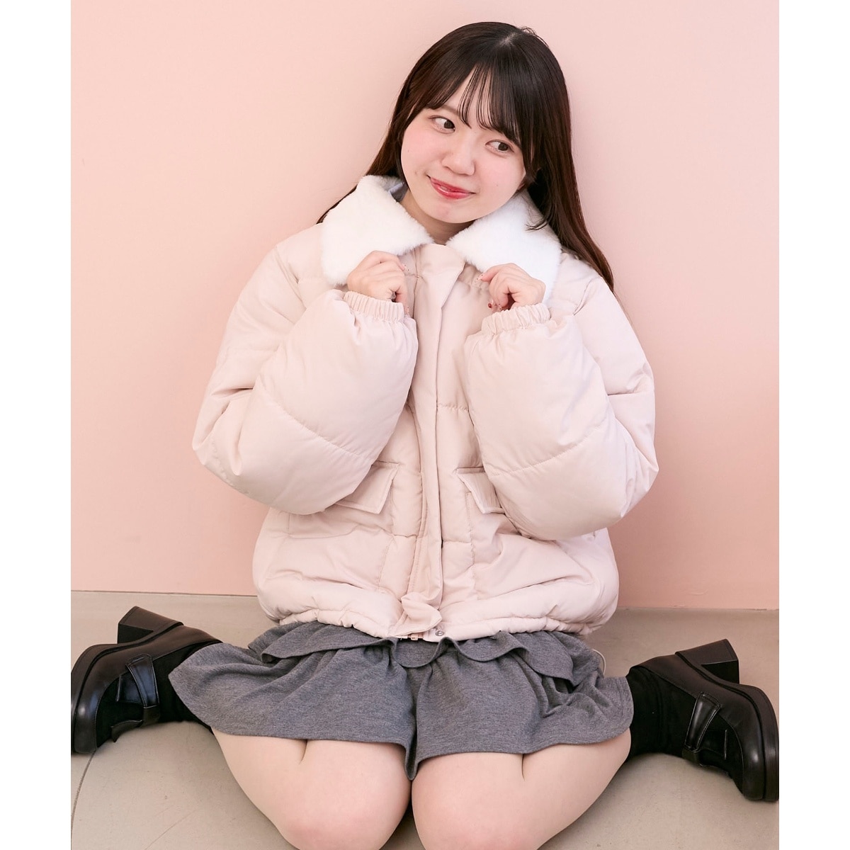 衿元にファーをあしらったカジュアル過ぎない中綿のあったかダウンジャケット。