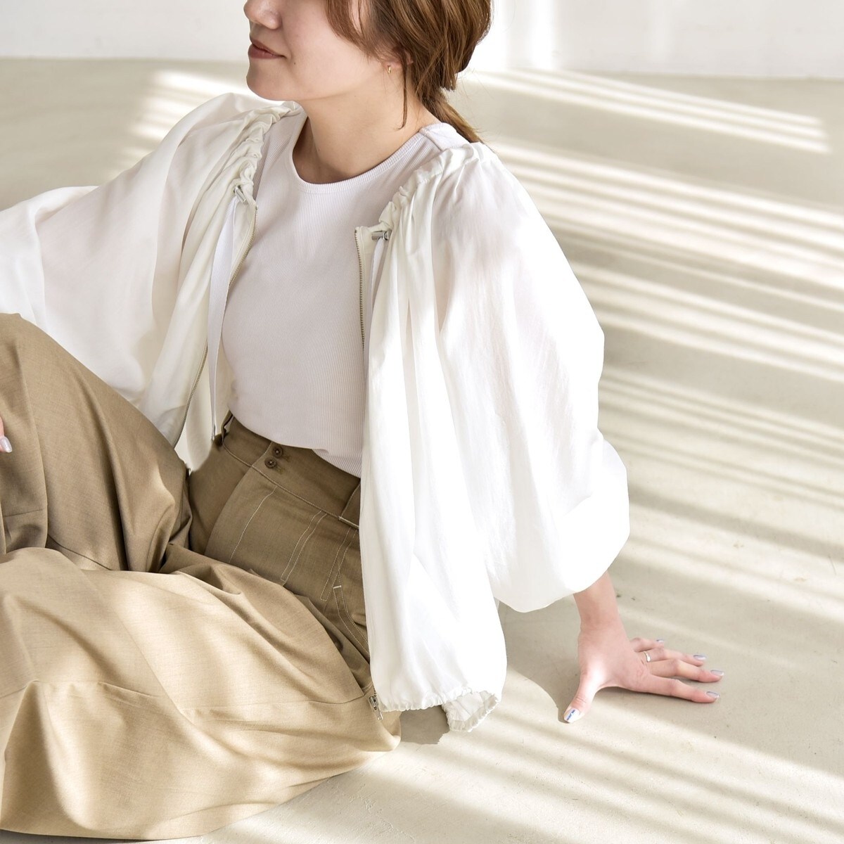 《予約》SHIPS any:〈洗濯機可能〉シアー ギャザー フリル ブルゾン