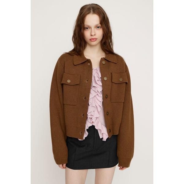 【FRONT BUTTON KNIT C/D】■POINTトップスとしても羽織りとしても着回せる万能カーディガン。肌当たりが柔らかく、程よいハリがある立体的な編地が、奥行きのある表情を生む一枚です。フロントのリベット釦と胸元のポケットのデザインが、シンプルな中に程よいアクセントになっているのがポイントです。■DETAILしっかりと厚みのある見た目ながら、ごわつきにくく、デイリーに使いやすい風合いです。ゆとりのあるシルエットと程よい着丈で着用時の重さを感じにくく、デイリー使いもしやすく幅広いスタイリングに取り入れやすいアイテムです。カジュアルすぎない品のある印象に仕上がります。■STYLINGジャストな着丈は、ミニ丈のボトムスとロングブーツを合わせたガーリーなスタイリングから、デニムやカーゴパンツを合わせたカジュアルなスタイルまで、幅広いコーディネートを楽しんでいただけるアイテムです。肌寒い時期はボタンを留めてトップス風に着れば、あたたかく、季節感のあるスタイリングを楽しんでいただけます。■FABRIC/MATERIALコットンとポリエステルの混紡糸をミラノリブで編んだ編地。コットンの風合いを残しながら編地にハリ感を持たせてジャケットライクに見せています。■透け感:なし■光沢感:なし■伸縮性:なし■裏 地:なし[注意事項]※画像の商品はサンプルです。実際の商品と仕様、加工が若干異なる場合があります。※画像の商品は光の照射や角度、お使いのモニター環境により、実物と色味が異なる場合がございます。※着用、お取り扱いの際は、アテンションタグをご確認ください。※一部予約商品につきましては生産上の都合によりお届け予定日や店頭発売と前後する場合もございます。※追加生産商品は、一部の店舗、通販で販売中の場合がございます。予めご了承下さい。