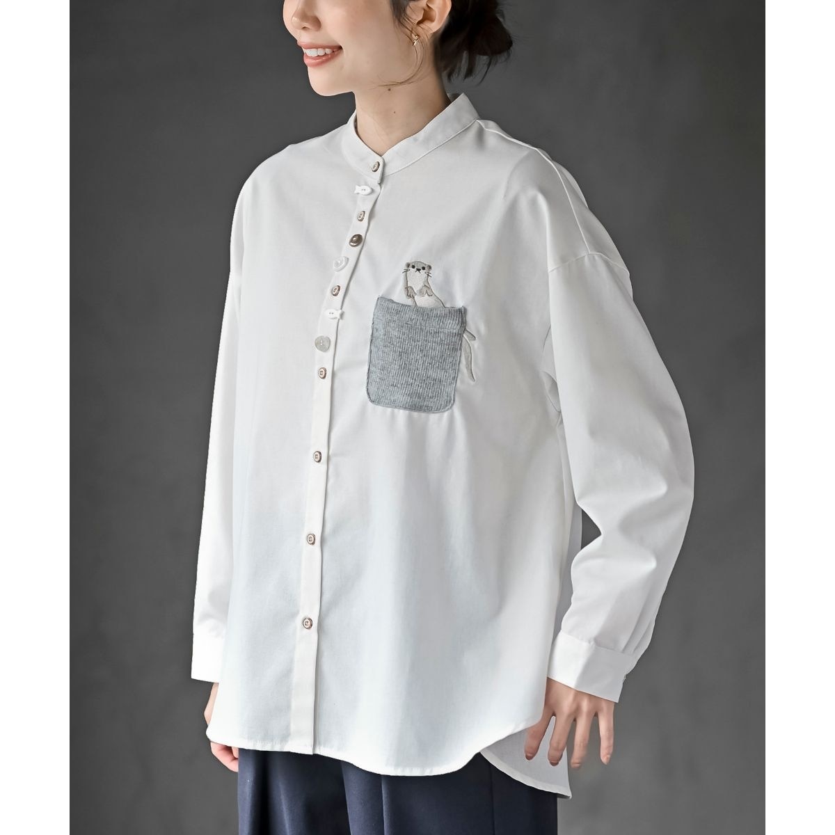 綿・コットン素材 / ポリエステル素材 / レーヨン素材 / 無地 / ワンポイント / ストライプ / チェック柄 / アニマル柄 / 長袖 / その他袖デザイン / 洗える / スタンドカラー / ハイネック・タートルネック / チュニック丈(トップス)