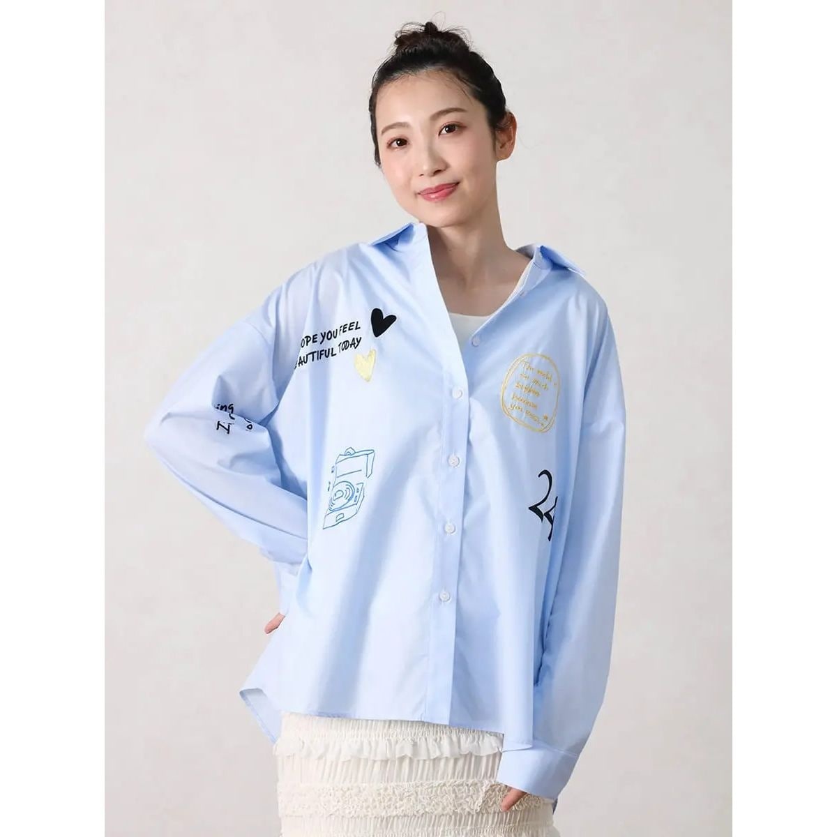 トレンド感のある刺繍とプリントを贅沢に散りばめたオーバーシャツ