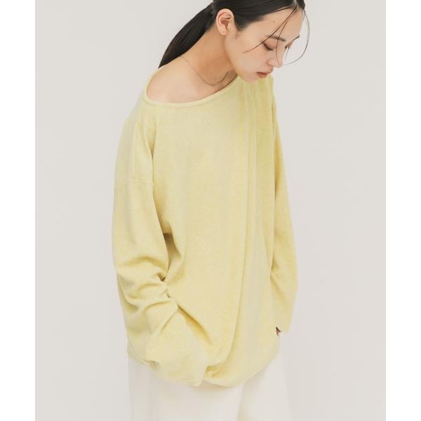 柔らかなパイル素材を使用した着心地の良いトップス。広めに設定されたネックは女性らしい印象に仕上がり、左脇の大きめのスリットは抜け感を叶えます。左肩にタックも入っており、少しドレープの効いたシルエットにもこだわりました。大人の方にもおすすめな1着です。