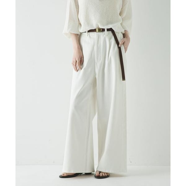 ヴィンテージライクな風合いの明るいブルーが季節感を引き立て、ルーズなシルエットとフロントのタックが、リラックス感のある着心地とさりげない体型カバーを両立。