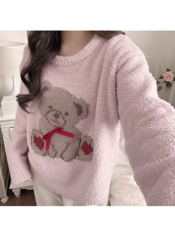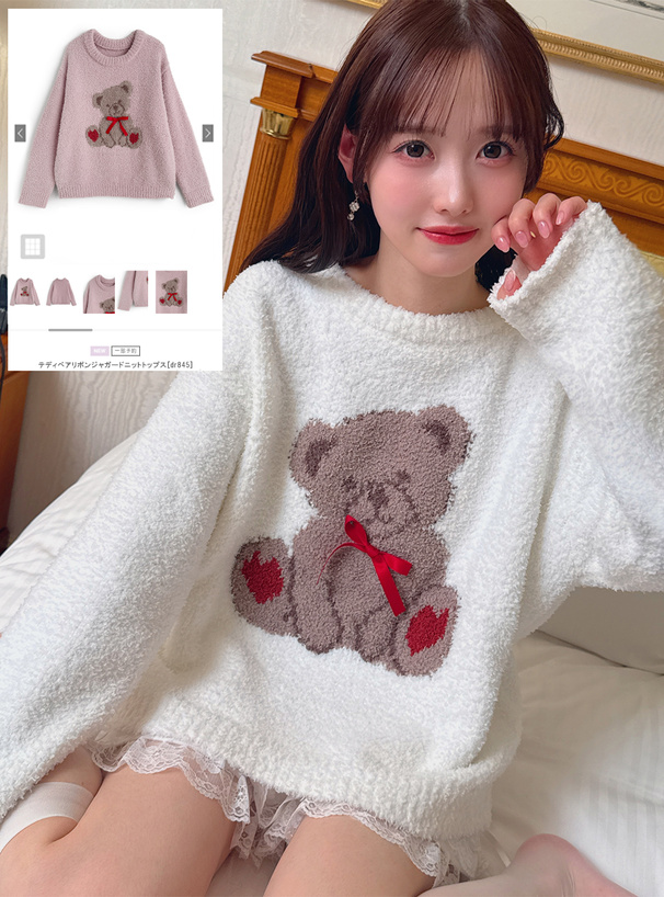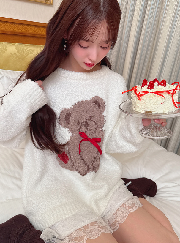 愛らしい表情のテディベアにキュンとする、ガーリームード漂うトップス。