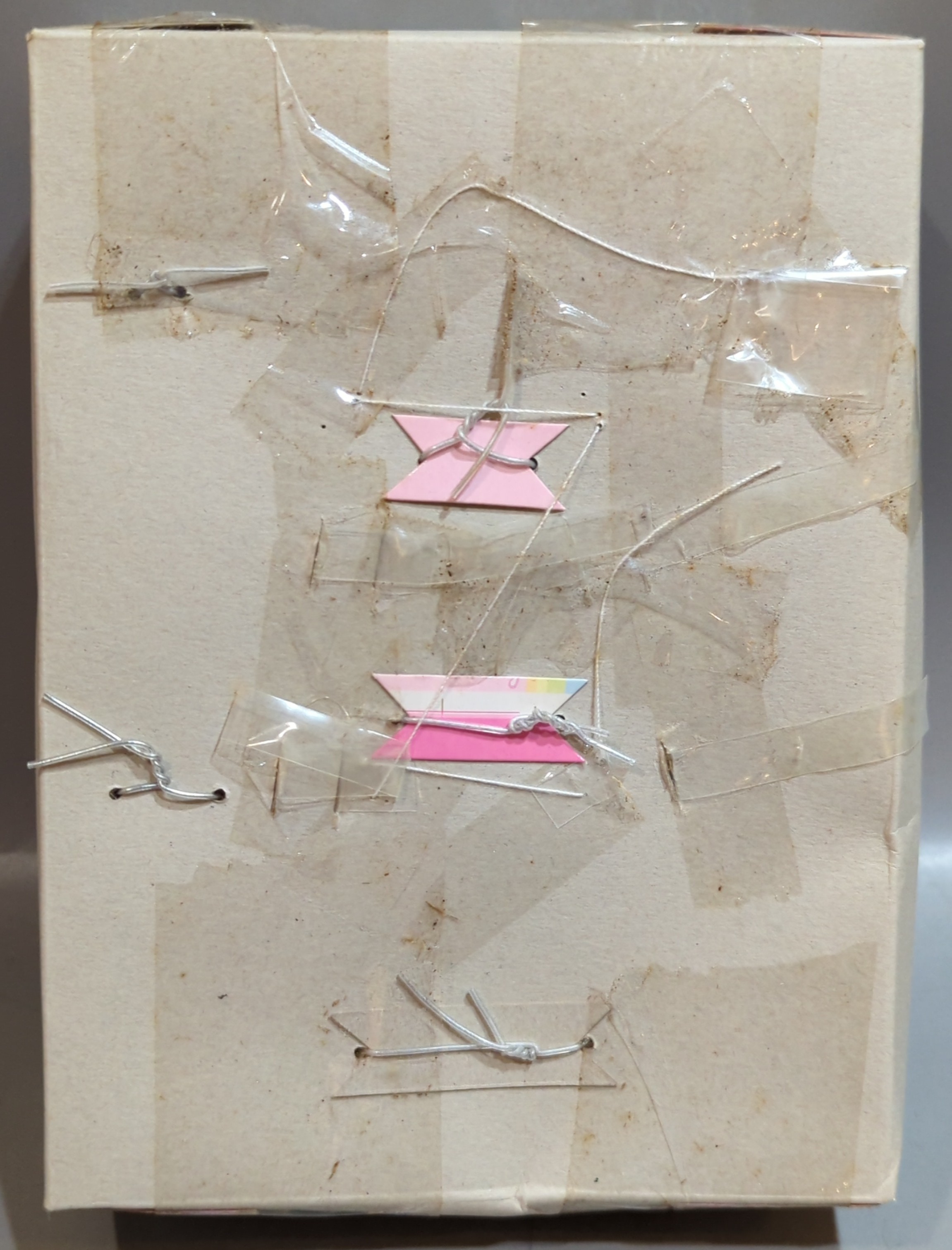 メーカーによる検品のため開封され再びテープ留めされたもの。中は未使用