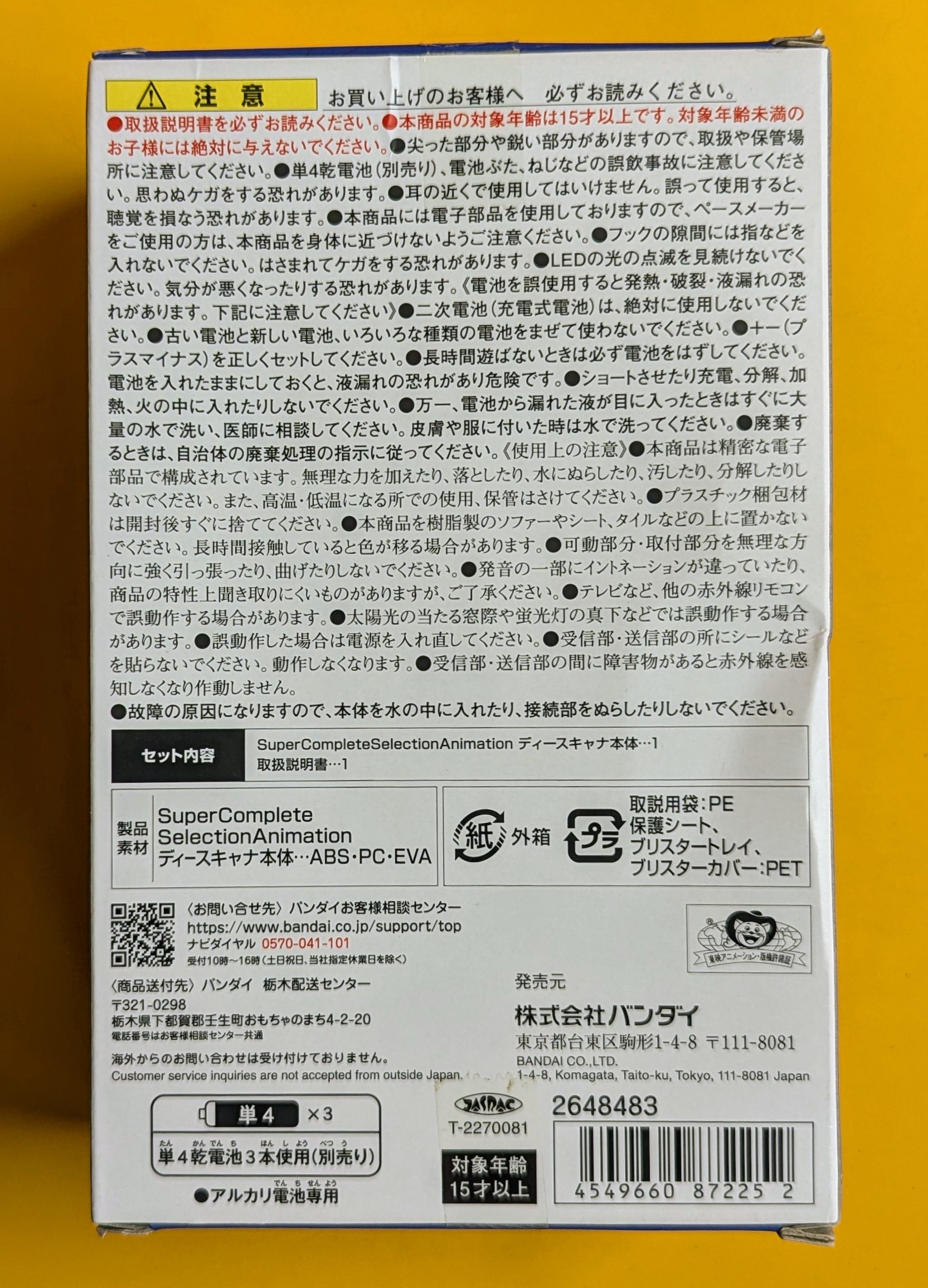- 電池を使用する玩具で未開封および未使用でない場合、付属のテスト電池が付属しない場合があります