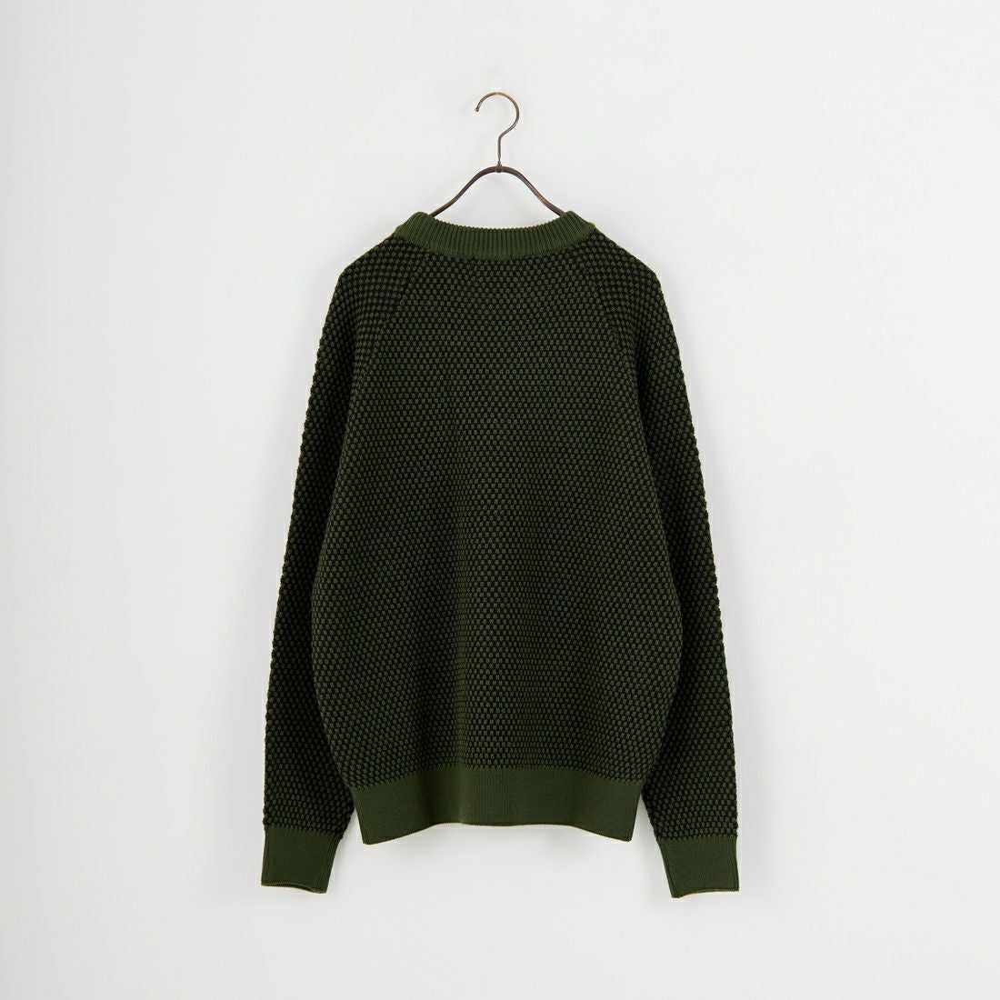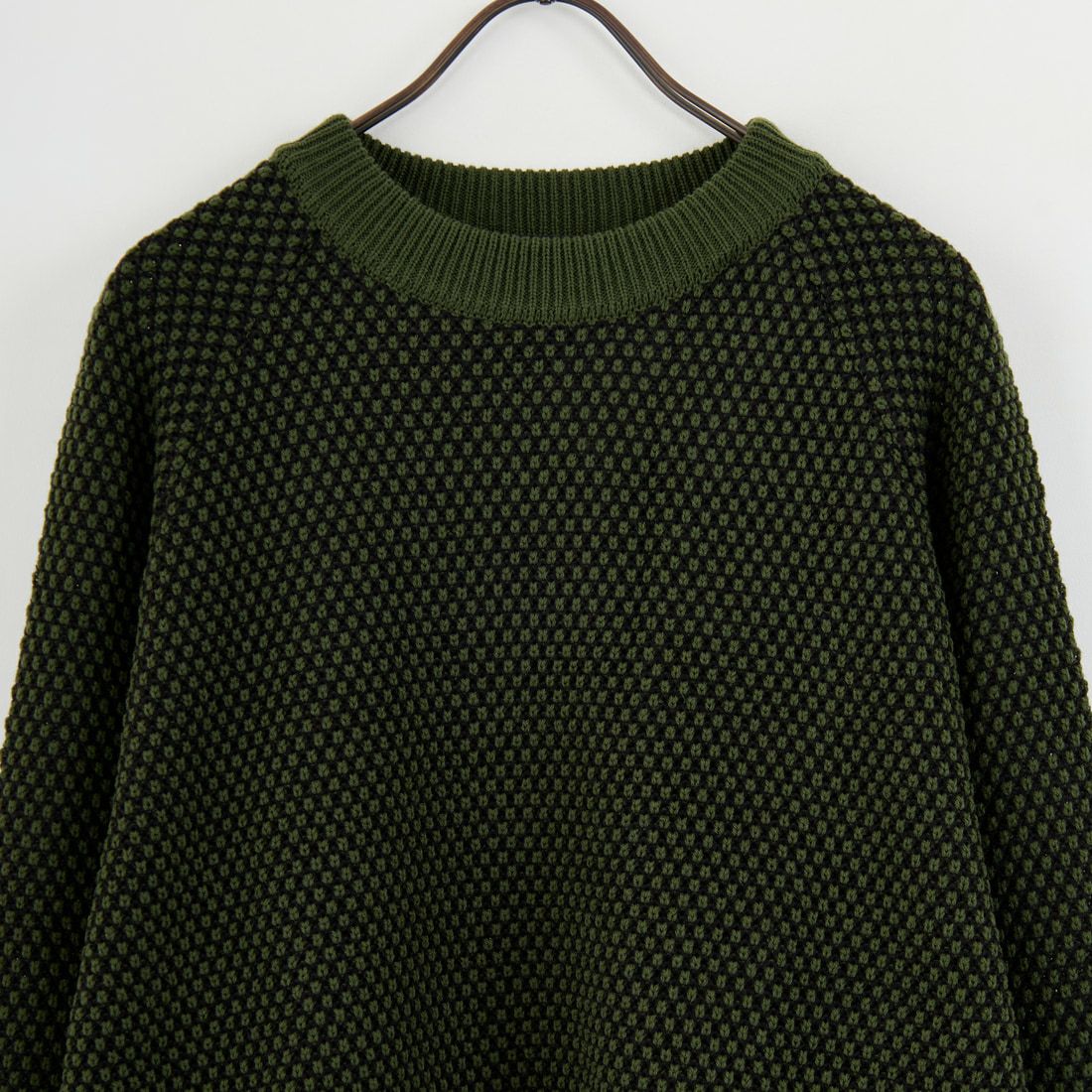 7ゲージで編み上げたポップコーン編みが特徴のクルーネックニット。凹凸のある立体的な編地が豊かな表情を生み、シンプルながら1枚で存在感を発揮します。アクリルとウールを組み合わせた素材は軽やかで暖かく、ウォッシャブル仕様のため自宅で手軽にケアできるのも魅力。ややゆとりを持たせたシルエットが、シャツやロンTとのレイヤードにも相性が良く、着こなしの幅を広げてくれます。カジュアルからきれいめまで合わせやすく、秋冬のスタイリングに取り入れやすい1着です。