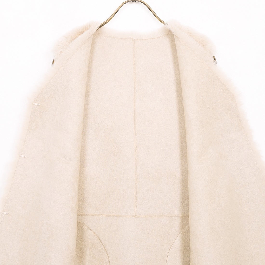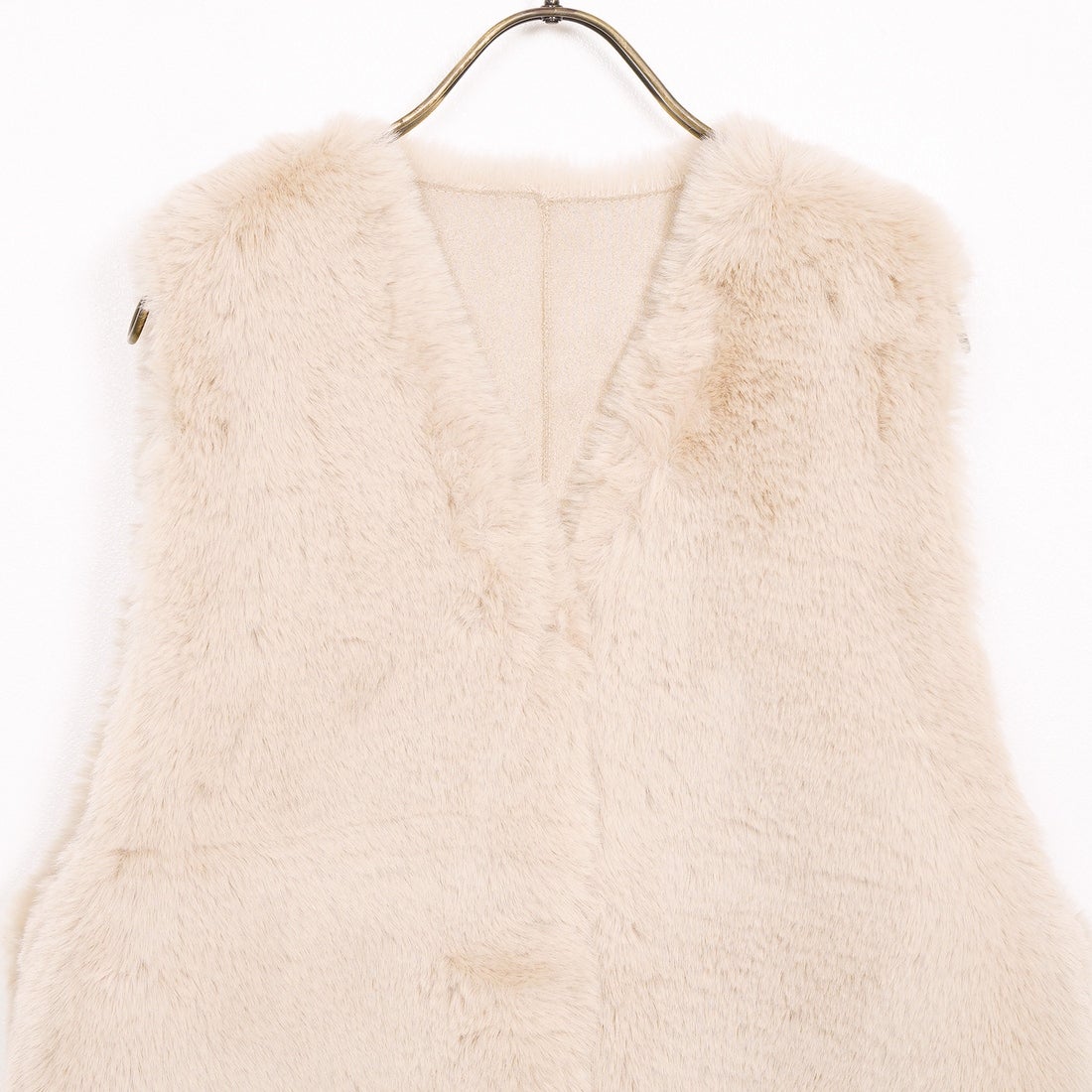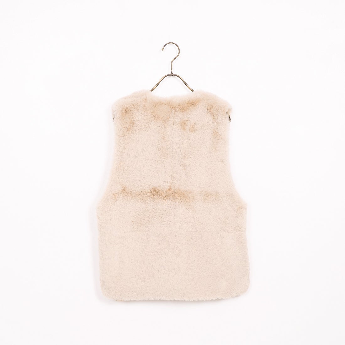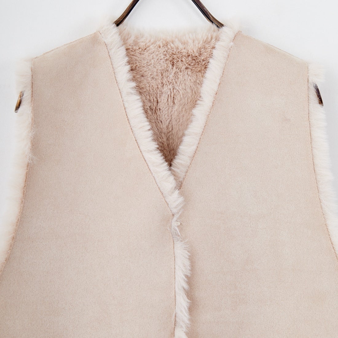 ふんわりとしたファーで程よくボリューム感があり、今年らしいスタイリングにマッチするファーベスト。裏面はフェイクスエードのリバーシブル仕様でカジュアル感を出したいときにおすすめです。スカートからパンツまで幅広くバランスを取りやすいデザインで、一枚羽織るだけでトレンドライクなスタイリングに仕上がります。合わせるインナーによっても雰囲気を変えらるので様々なコーディネートに活躍するアイテムです。