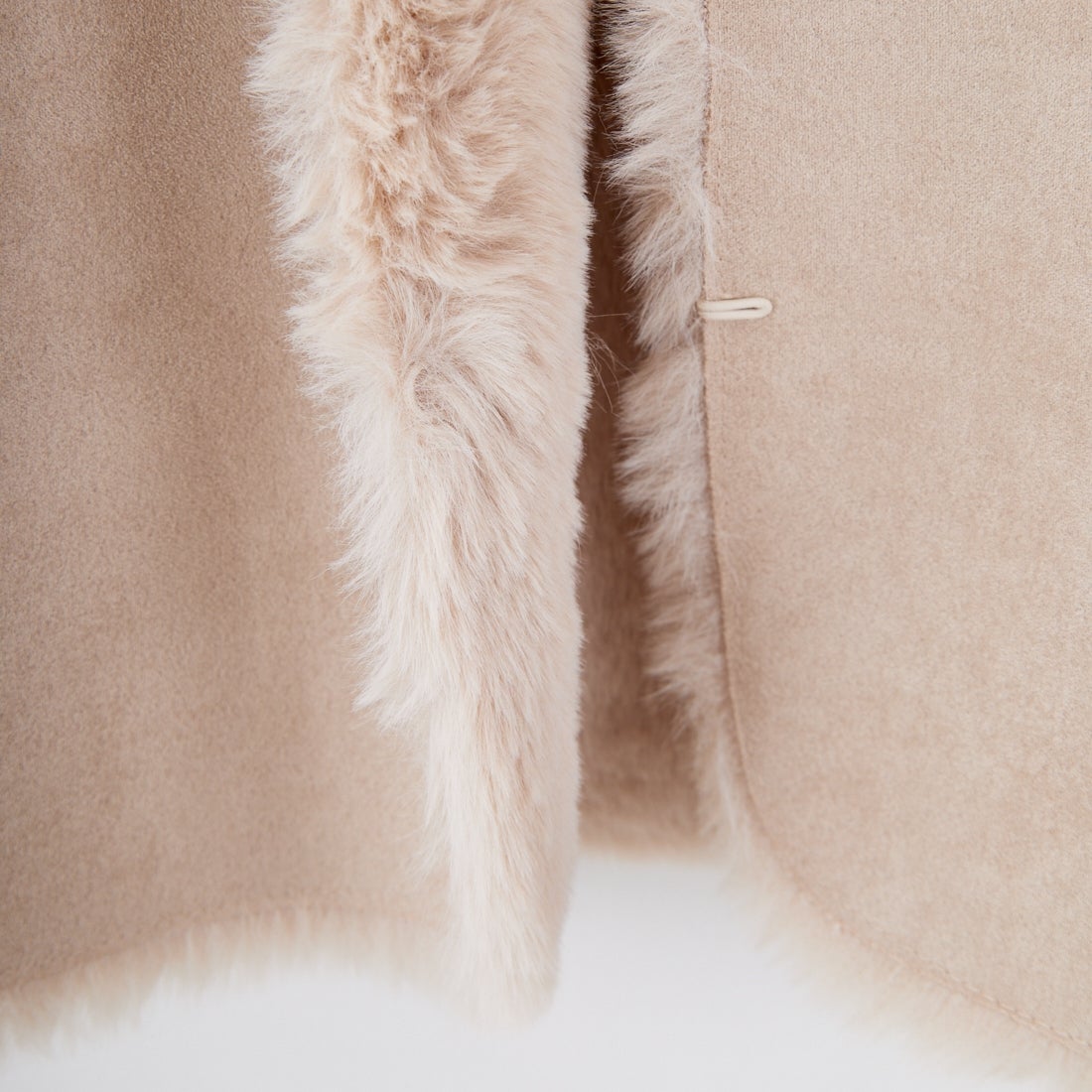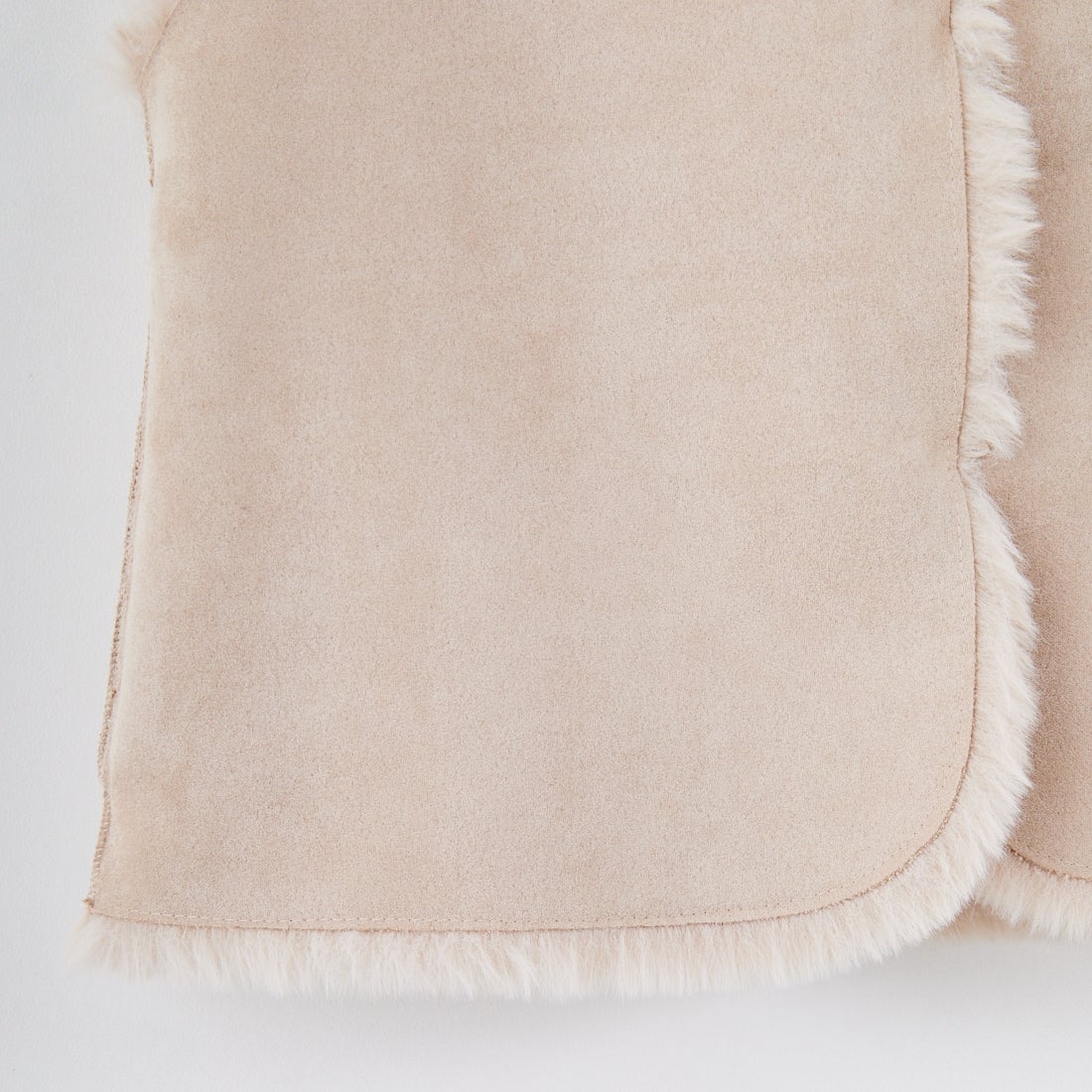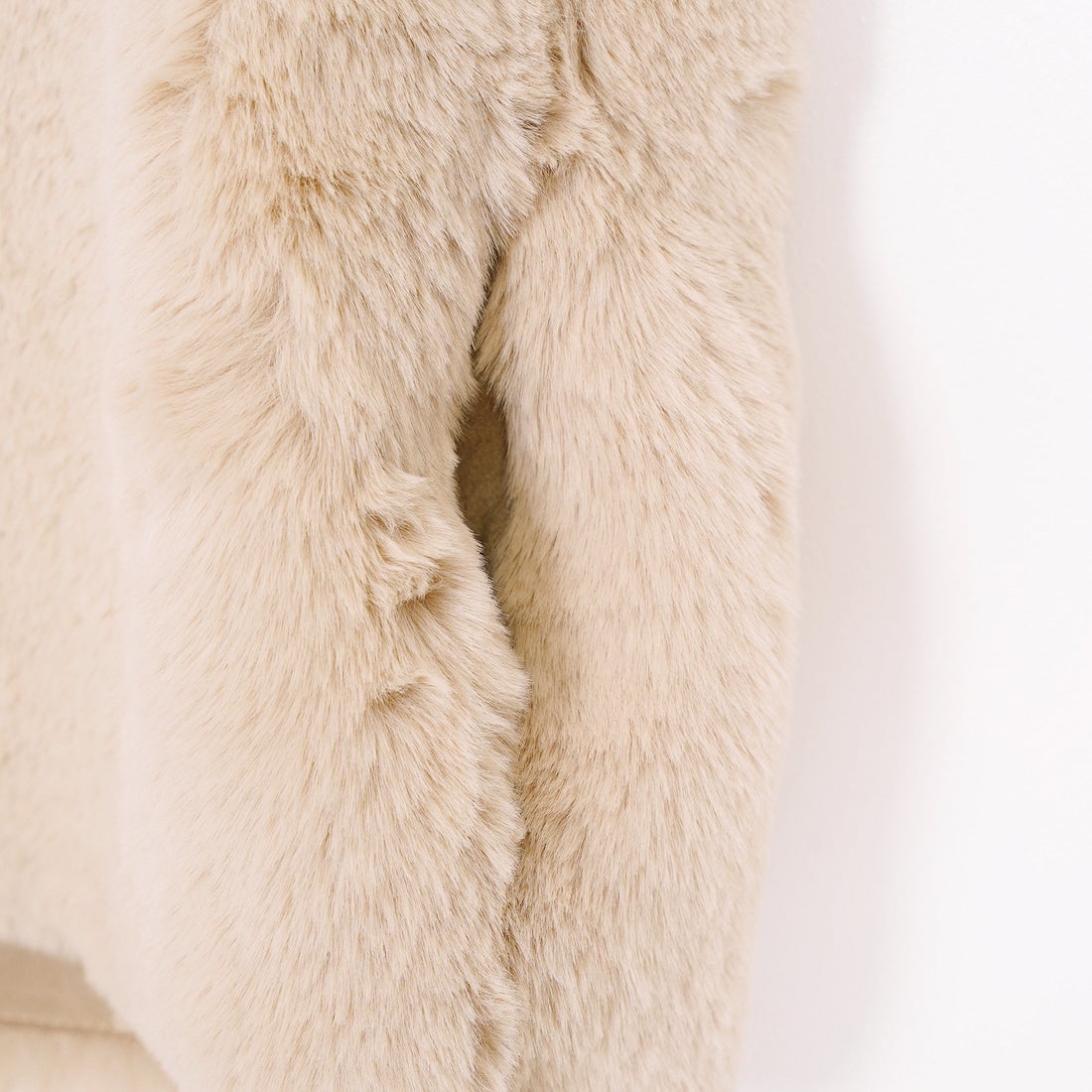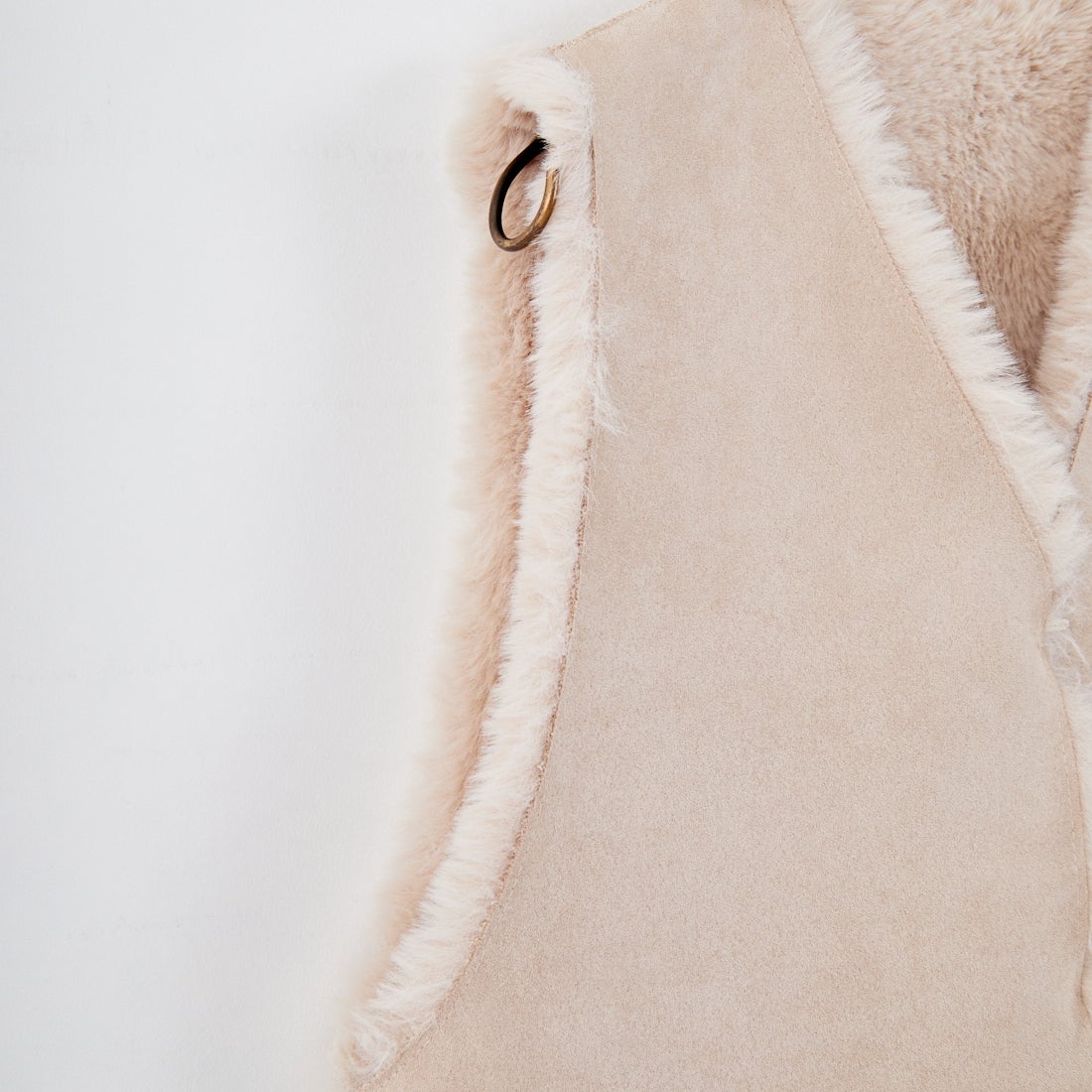 ふんわりとしたファーで程よくボリューム感があり、今年らしいスタイリングにマッチするファーベスト。裏面はフェイクスエードのリバーシブル仕様でカジュアル感を出したいときにおすすめです。スカートからパンツまで幅広くバランスを取りやすいデザインで、一枚羽織るだけでトレンドライクなスタイリングに仕上がります。合わせるインナーによっても雰囲気を変えらるので様々なコーディネートに活躍するアイテムです。