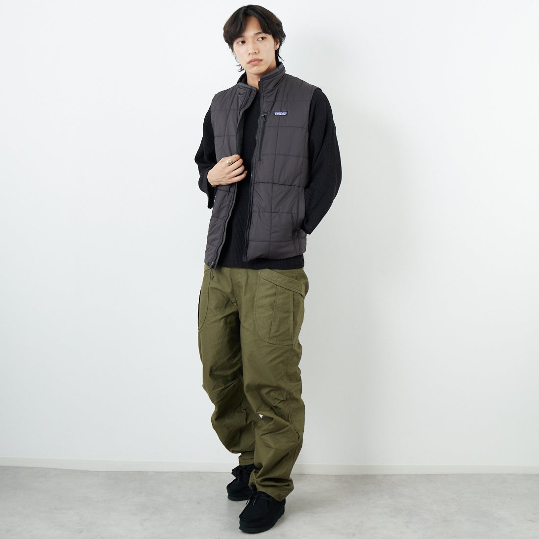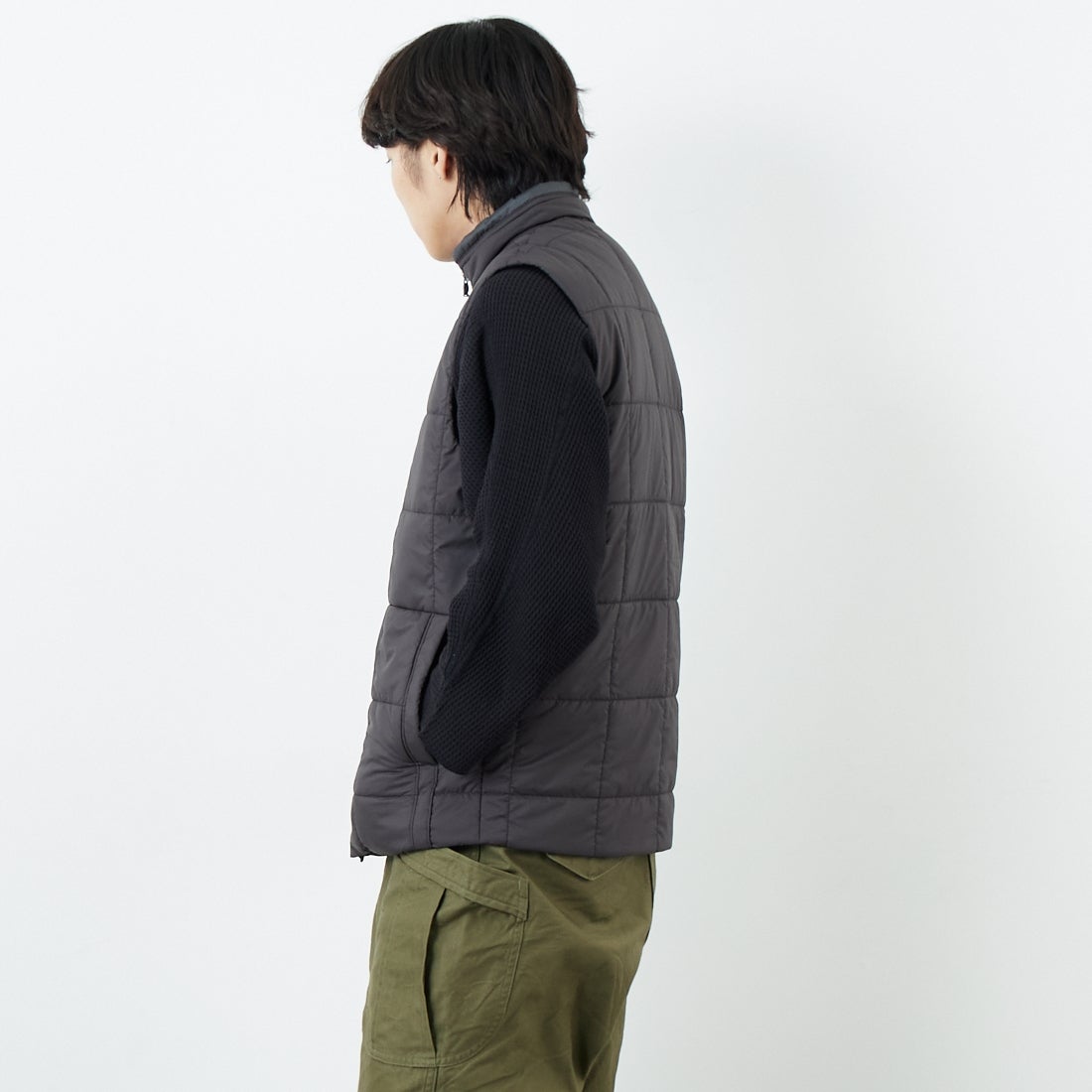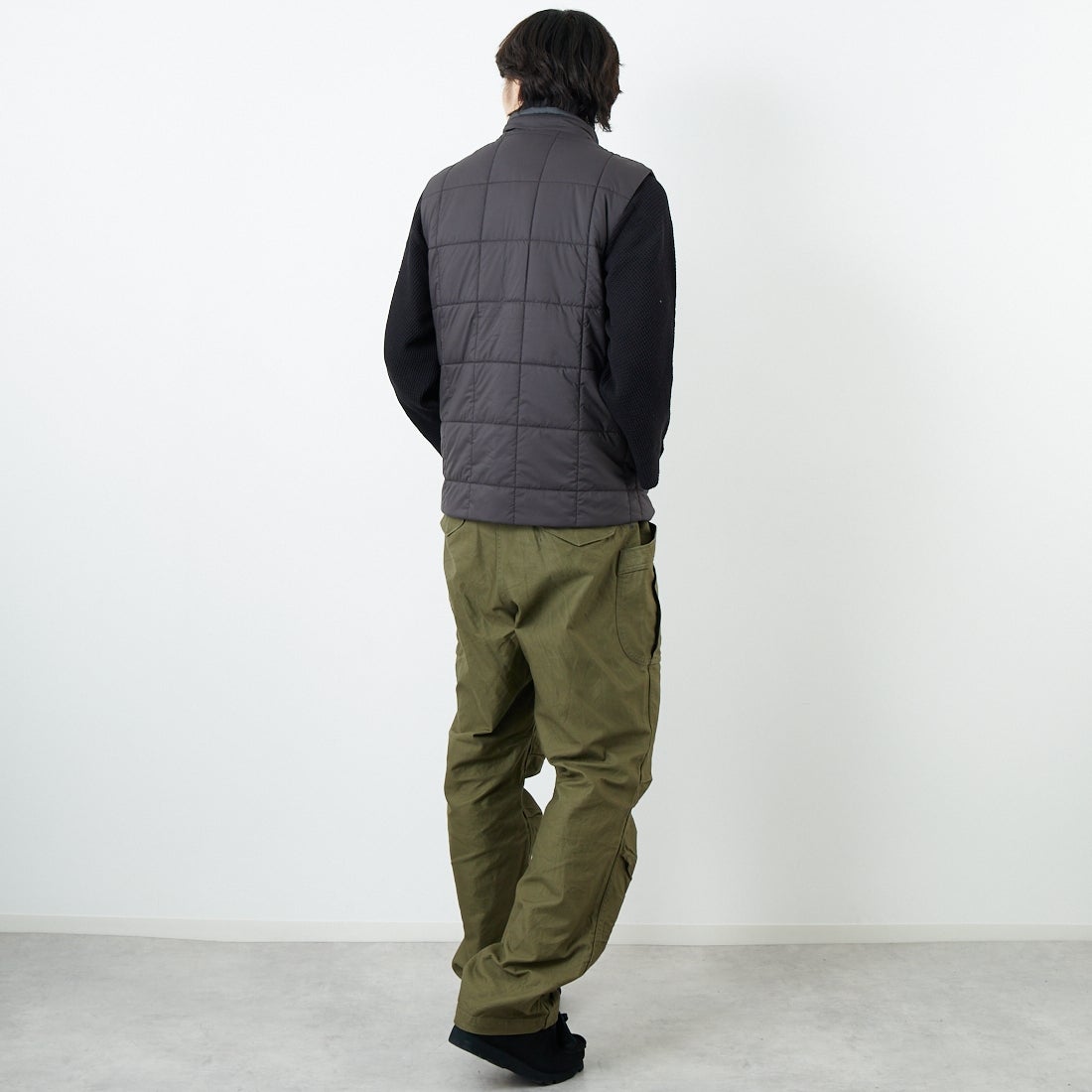混在する天候下で身軽に旅するときに、定番のインサレーションとなるのがライト・ガスト・ベスト。本体の素材は伸縮性を備えたポリエステル100%(リサイクル・ポリエステル70%(で、新しいリサイクル・ポリエステル100%のタフタの裏地を施し、水分を弾くDWR(耐久性撥水)加工はPFASを意図的に使用せずに製造。フェアトレード・サーティファイドの工場で製造されています。