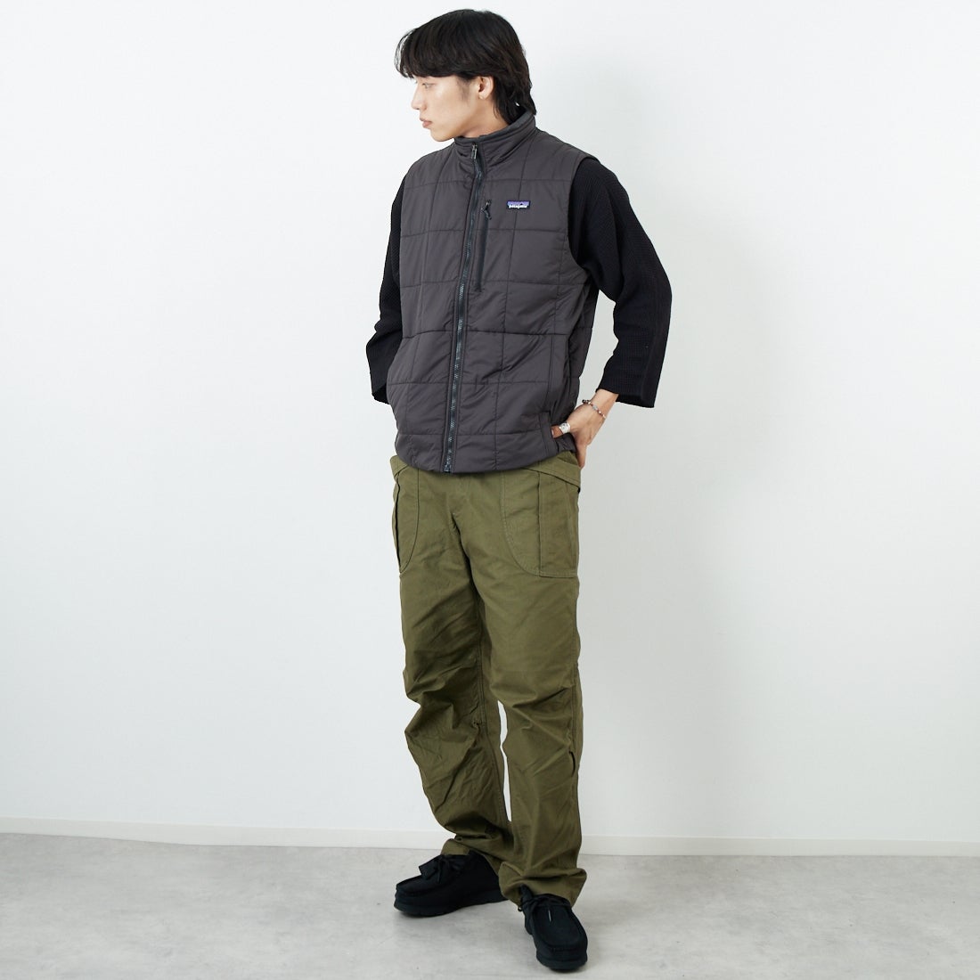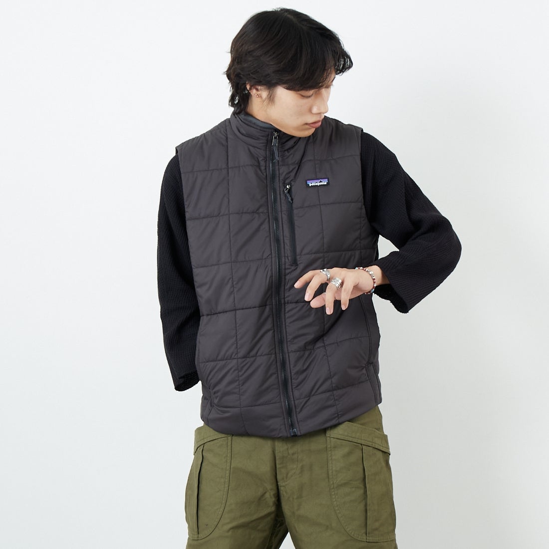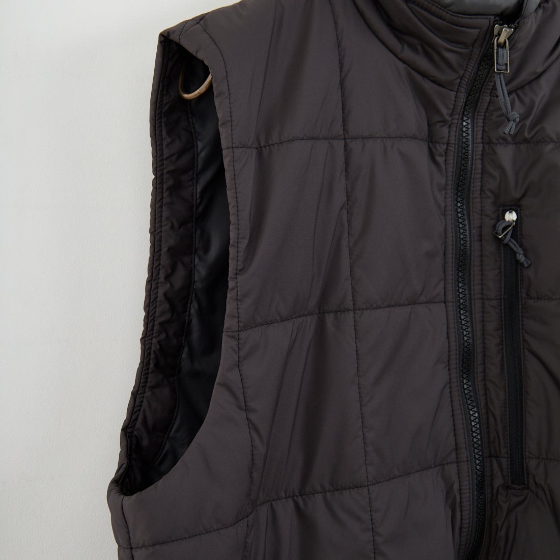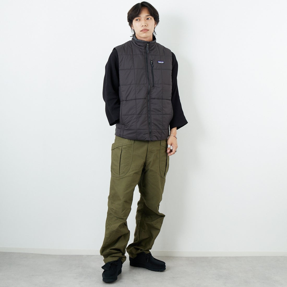 混在する天候下で身軽に旅するときに、定番のインサレーションとなるのがライト・ガスト・ベスト。本体の素材は伸縮性を備えたポリエステル100%(リサイクル・ポリエステル70%(で、新しいリサイクル・ポリエステル100%のタフタの裏地を施し、水分を弾くDWR(耐久性撥水)加工はPFASを意図的に使用せずに製造。フェアトレード・サーティファイドの工場で製造されています。