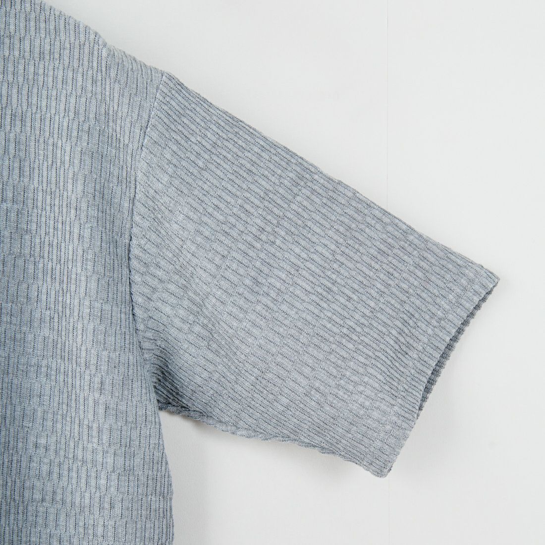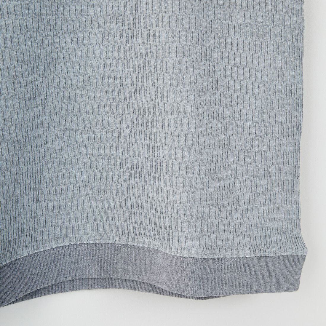 スウェットライクなショートスリーブTシャツ。ミリタリーインナー由来のビックハニカムワッフル素材はポリエステルを使用しているため、軽量で伸縮性に富み、コンフォートな着心地が特徴です。程よくリラックスしたフィット感と裾リブデザインのこなれ感が、さりげないアクセントになっています。