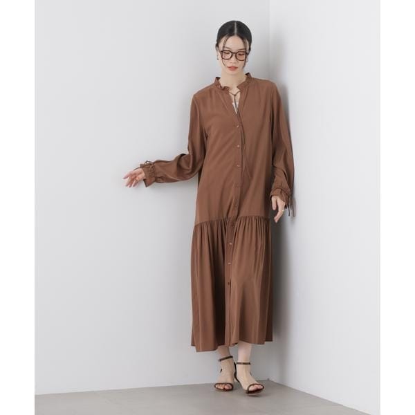 程よい光沢感と女性らしさを引き立てるディテールを詰め込んだワンピース。切り替え部分から裾にかけてたっぷりと施したギャザーが、動くたびに美しいシルエットを演出。通勤シーンからちょっとしたお呼ばれやオケージョンまで、1枚でスタイリングが完成する上品なアイテムです。