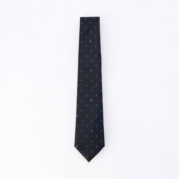 表面に細かい凹凸が見える「ジャカード織り」で、光沢が控えめで、 ビジネスからカジュアルなパーティーまで使いやすいネクタイです。