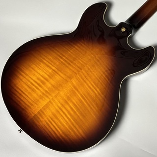 ボディ:アーチド・メイプル+シカモア(トップ&バック)、バーチ+シカモア(サイド)、メイプル+スプルース(センターブロック)