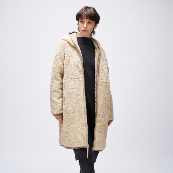 軽くて柔らかく暖かい、リバーシブル仕様のダウン×マイクロボアコート。