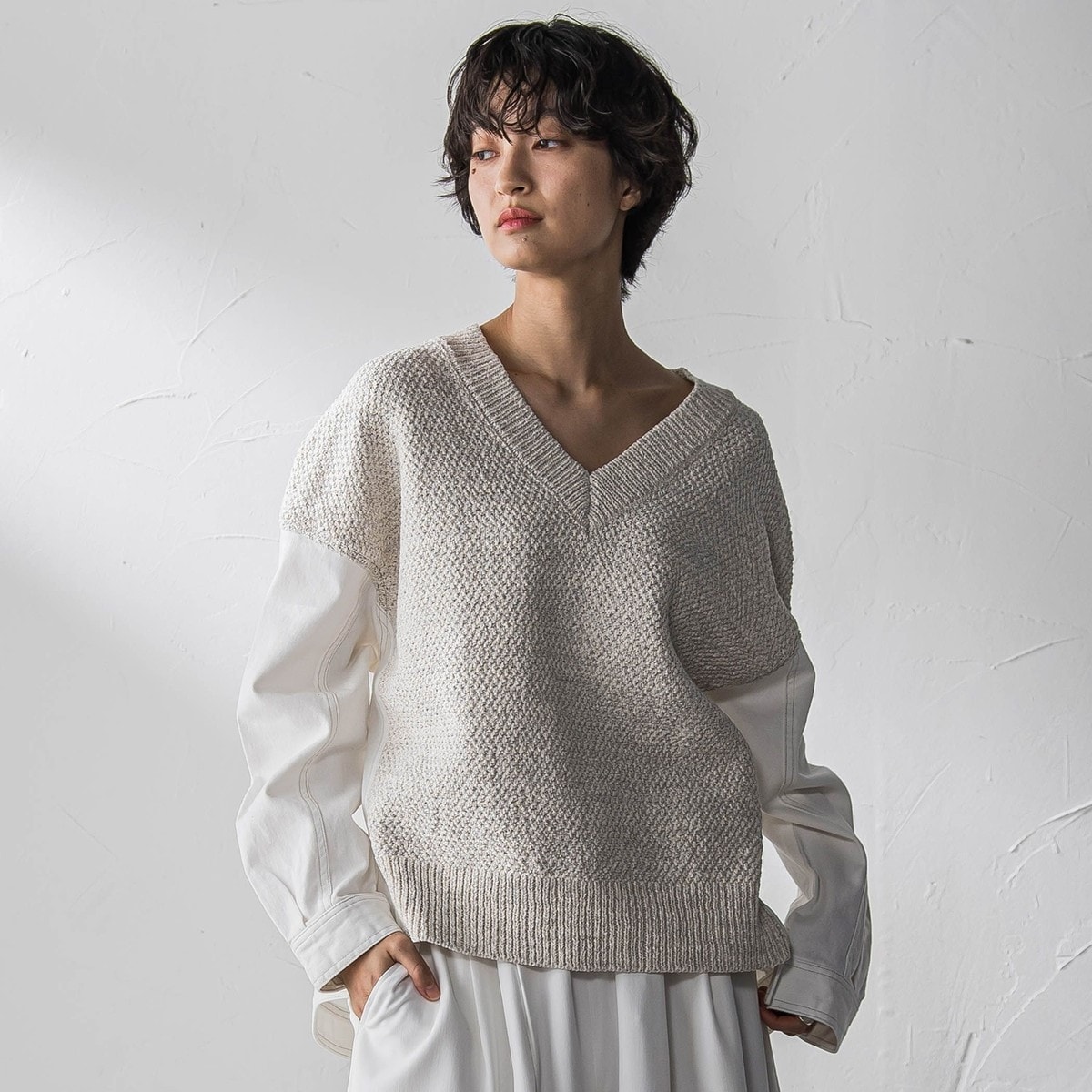 デニムドッキングニットカーディガン≪洗濯機で洗える≫