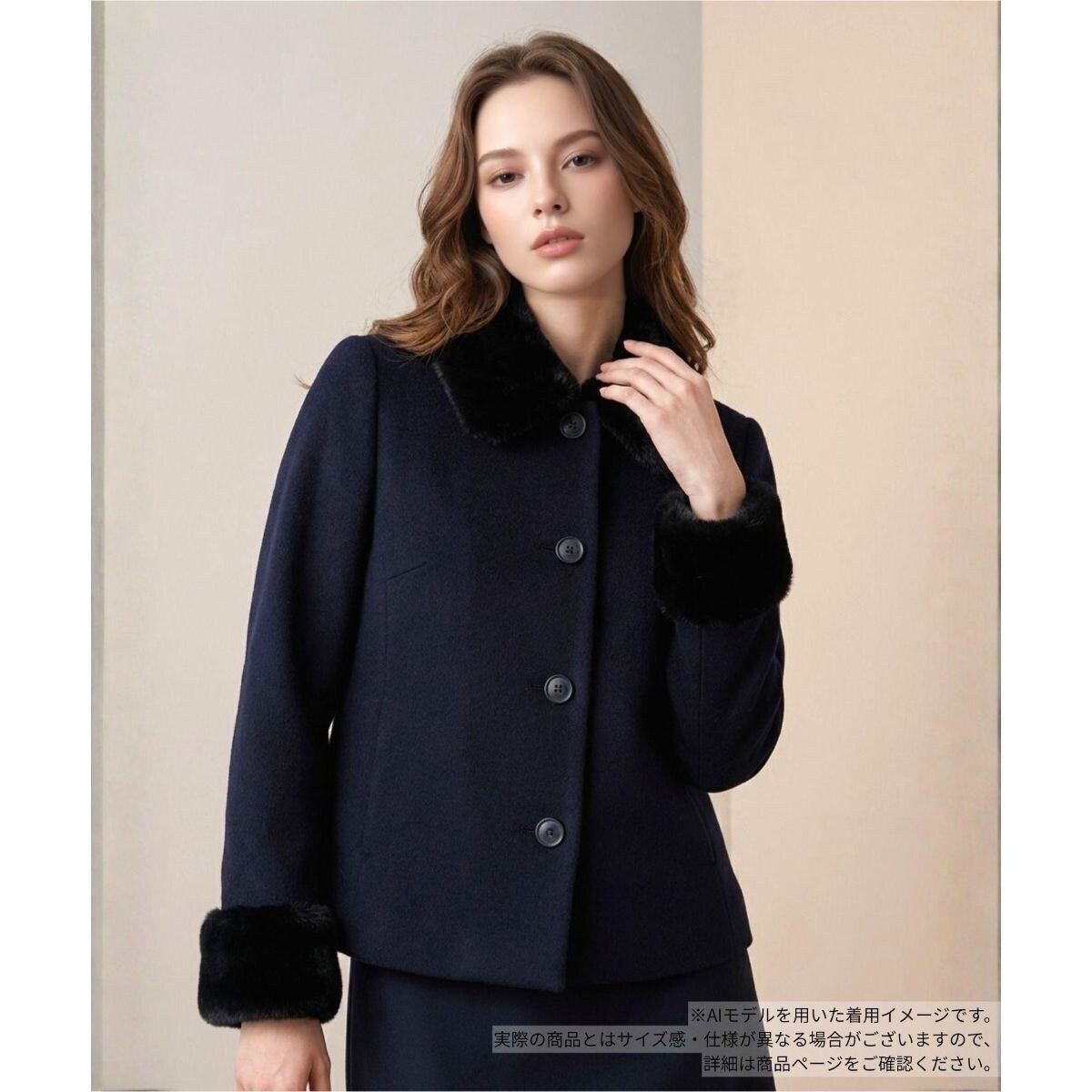 襟と袖口にあしらわれた滑らかなフェイクファーが、上品なアクセントになったジャケットです。襟はボタンで取り外し可能となっており、ファーを付ければ顔周りを華やかに、外せばすっきりとしたノーカラージャケットとして着こなせる2WAY仕様です。シーズンに最適な厚手の生地を使用し、裏地付きで暖かく袖通りもスムーズ。気分やシーンに合わせて着こなしのアレンジを楽しめる、汎用性の高い一着です。