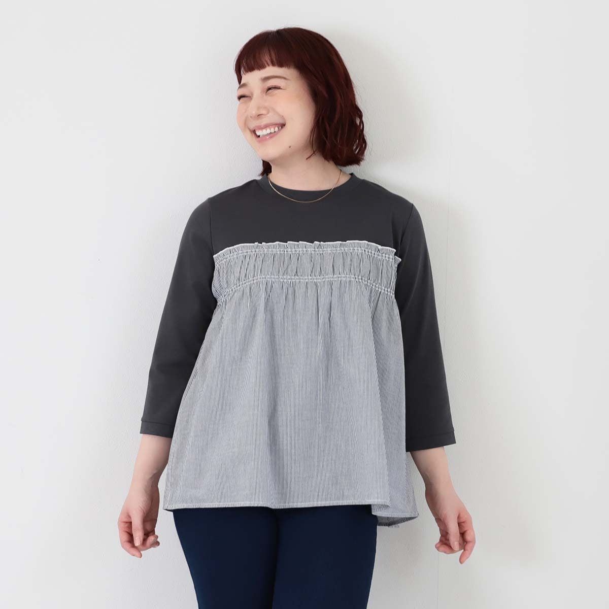 新品タグ付き☆ 大きいサイズ 4L シャーリング ブラウス