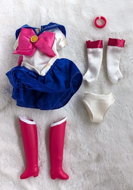 商品状態: 箱、カード、ステッキ、スタンド欠品/髪イタミ大/本体イタミ、汚れ、ヤケ、膝と足首付近破損(接着跡有)/ピアスメッキはげ/押し入れ臭有/衣装シミあり