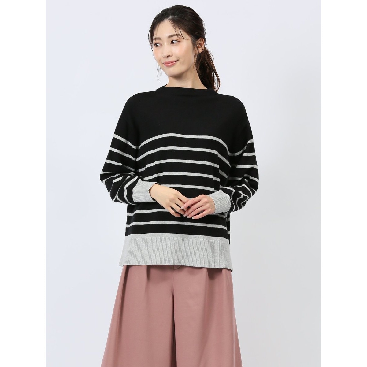 ボーダー ボトルネック ニットプルオーバー