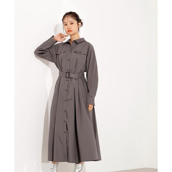 ウエストにタックが入り、リボンを結ぶだけで立体的なシルエットが叶うシャツワンピース。配色バックルやボタン、ポケットなどのカジュアルなディテールを加えています。1枚で着るのはもちろん、タートルネックを中に着てレイヤードするのもおすすめです。<素材>しっかりとしたハリ感のある素材を使用しています。<詳細>仕様・前ボタン裏地・なし透け感・なし / 光沢・なし / 伸縮性・なし※モデルの着用画像の場合、光の当たり具合により、実際の色味と異なって見えることがございます。色味は、商品単体の画像をご参照ください。