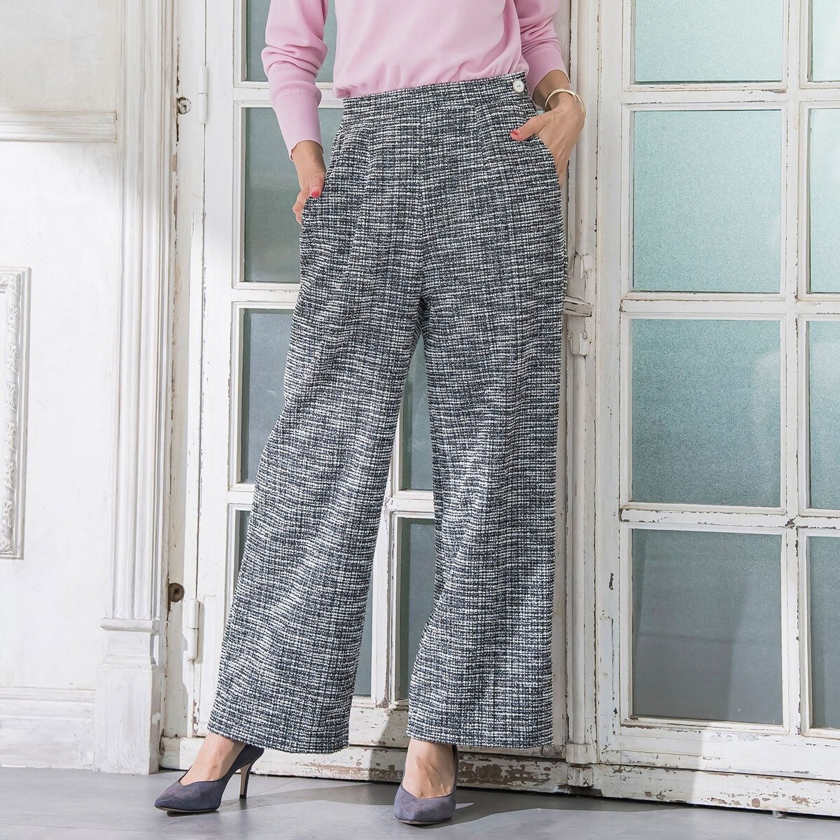 ツイード風グレー系ワイドパンツ