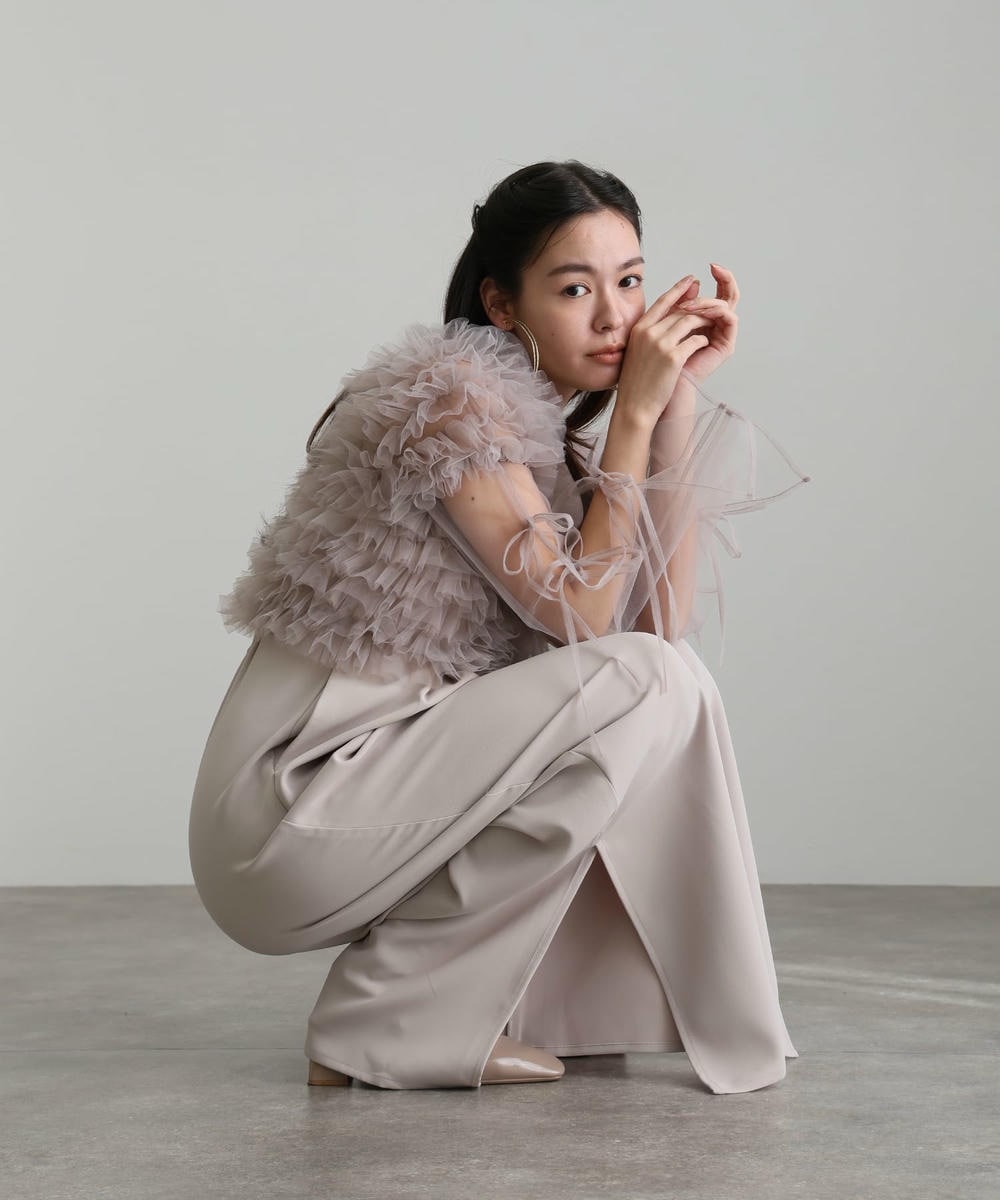 シアートップス・フリルボレロ・パンツがセットになった特別な一着。