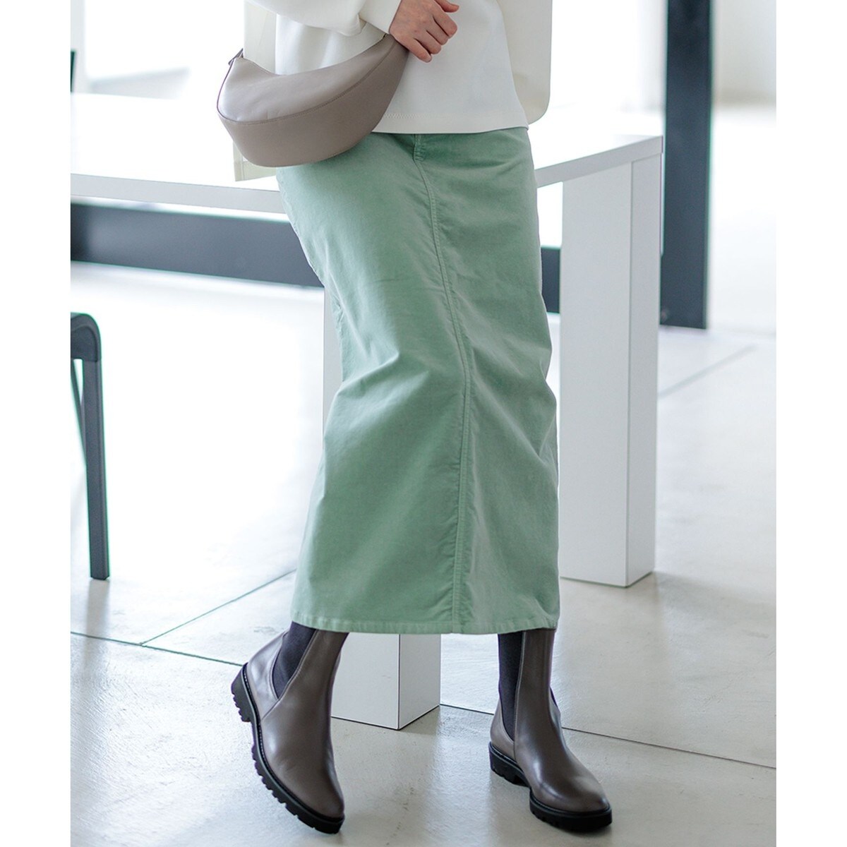 23区定番のベルベット素材でつくるセミAラインのスカート。程よいAラインが体のラインを拾い過ぎないデザインです。すっきりとした見え感を叶えつつも、気になる部分は隠してくれる使い勝手の良いアイテムです。程よい丈感でブーツやスニーカーなど合わせるシューズを問わず、スタイリングの幅を広げてくれます。いつものコーデにプラスするだけでぐっと秋冬らしい雰囲気に。カラーは柔らかな色味のライトグレー(#003)、着回し力抜群のチャコール(#004)、華やかさをプラスするミント(#063)、シックな印象のダークグリーン(#065)の4色展開です。