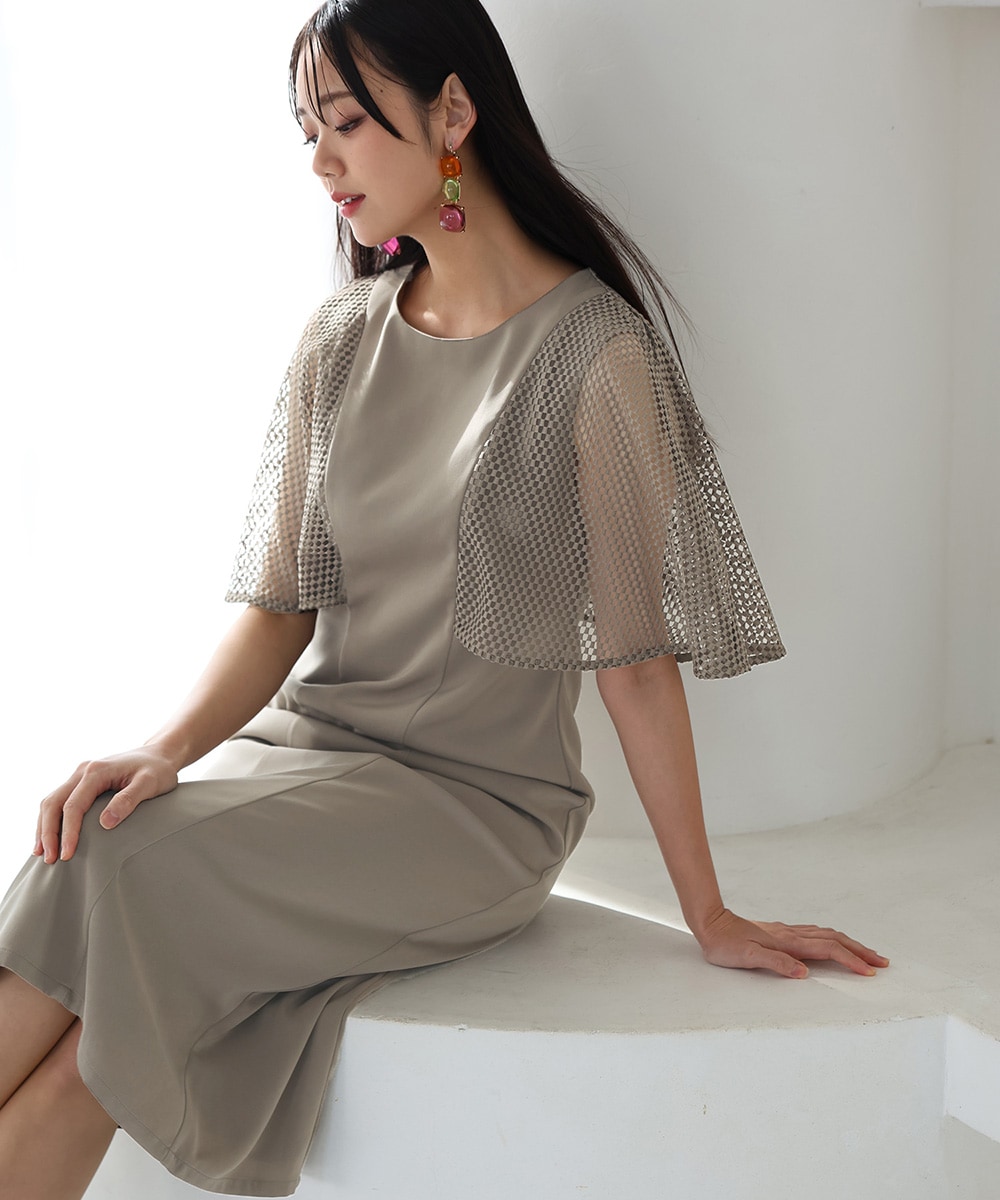 ケープスリーブが特徴的なタイトラインワンピース。