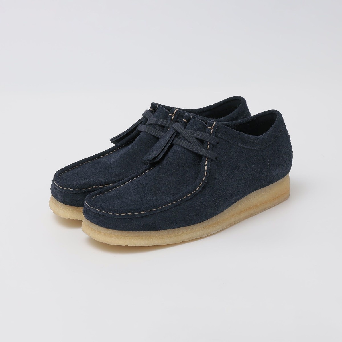 ネイビースエードのさわやかなカラーリングに、ホワイトステッチと明るいトーンのクレープソールで、軽やかな印象のWALLABEEとなっております。