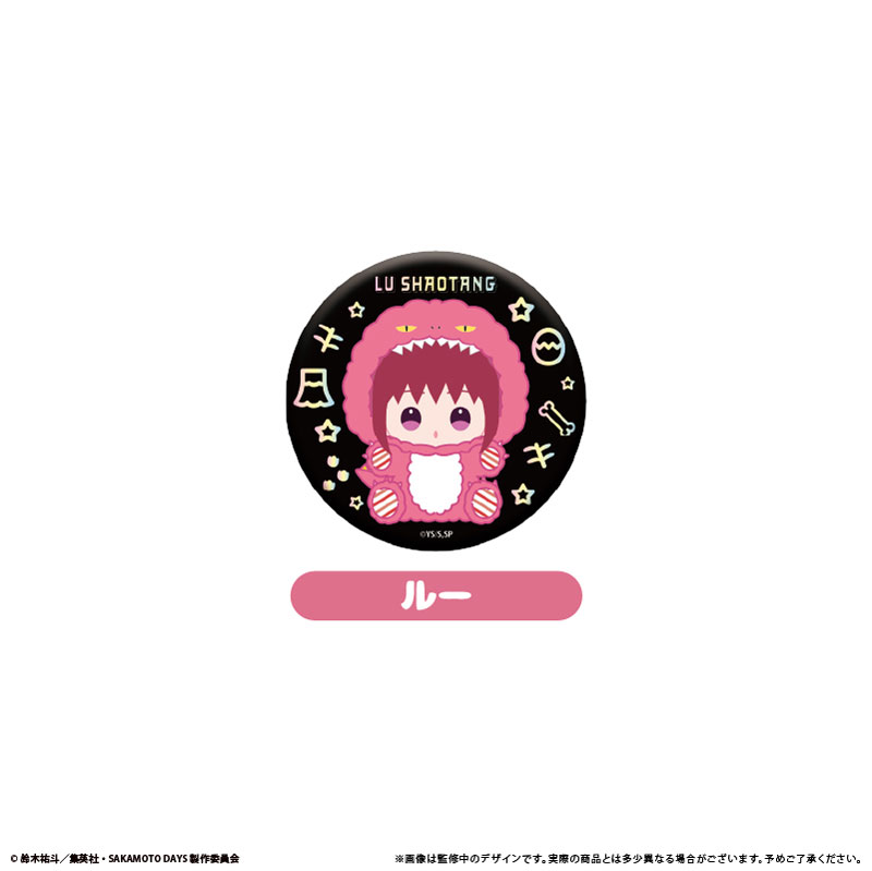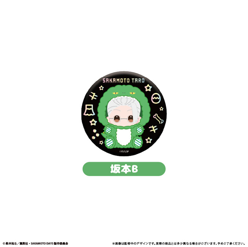 1BOX購入で全8種揃います。 TVアニメ『SAKAMOTO DAYS』より、きらっと輝くラメが美しい 恐竜モチーフイラストを使用したラメ缶バッジです!