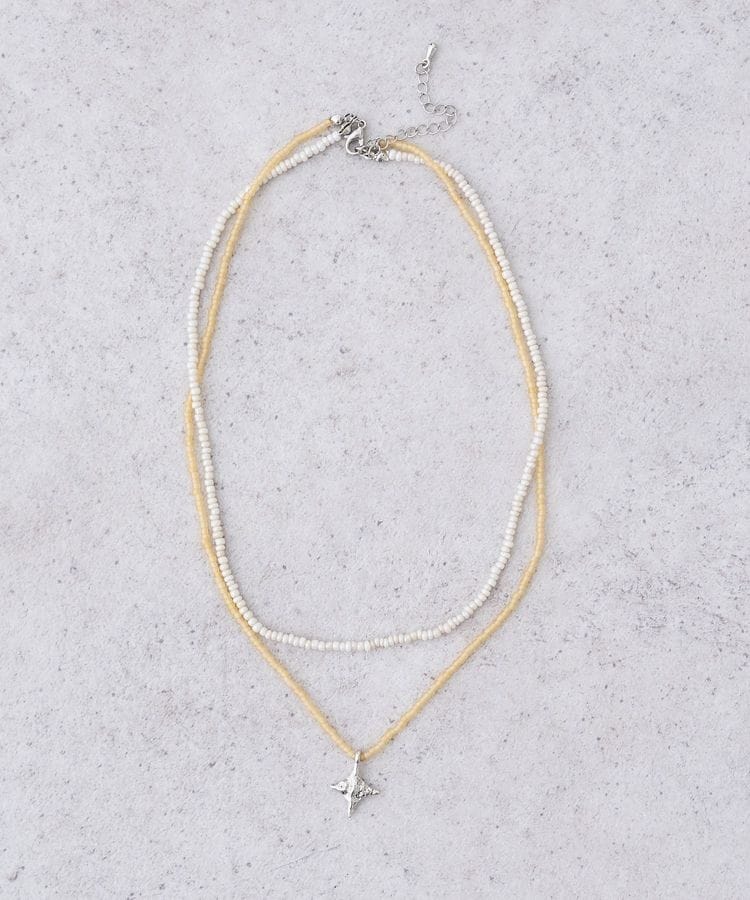 やさしく彩る2連ビーズのきらめき繊細なビーズを重ねた2連デザインが、首元にさりげない華やかさを添えてくれます。ニュアンスのあるカラーが肌になじみやすく、ナチュラルなコーディネートにもきれいめスタイルにも合わせやすいネックレスです。細やかなビーズが光を受けてやわらかく輝き、顔まわりを明るい印象に導きます。2連仕様なのでこれひとつでレイヤード風のバランスが完成し、重ね付けを考えなくてもおしゃれに決まります。Tシャツやブラウス、ワンピースなど幅広いアイテムと相性が良く、デイリー使いにもぴったりです。軽やかなつけ心地で長時間の着用でも快適にお楽しみいただけます。※モデル着用画像は、光の当たり具合で色味が違って見える場合がございます。※お使いのモニター環境によって商品の色味が違って見える場合がございます。