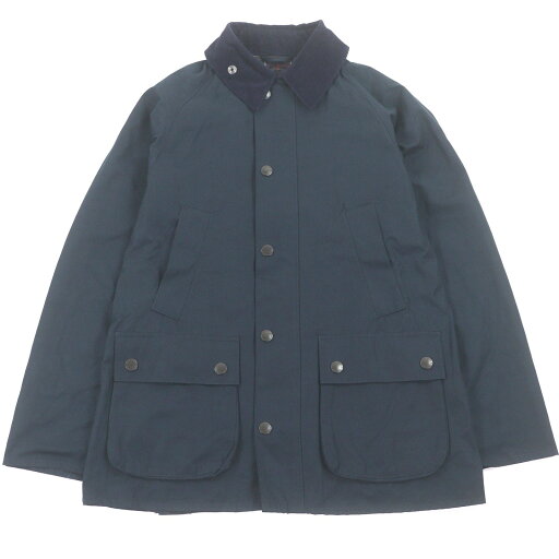 美品▼Barbour バブアー SOLWAY コットン コットン 襟コーデュロイ ベルト付き ダブルジップアップ ワックスジャケット ネイビー 36 ブルガリア製 正規品 メンズ【中古】