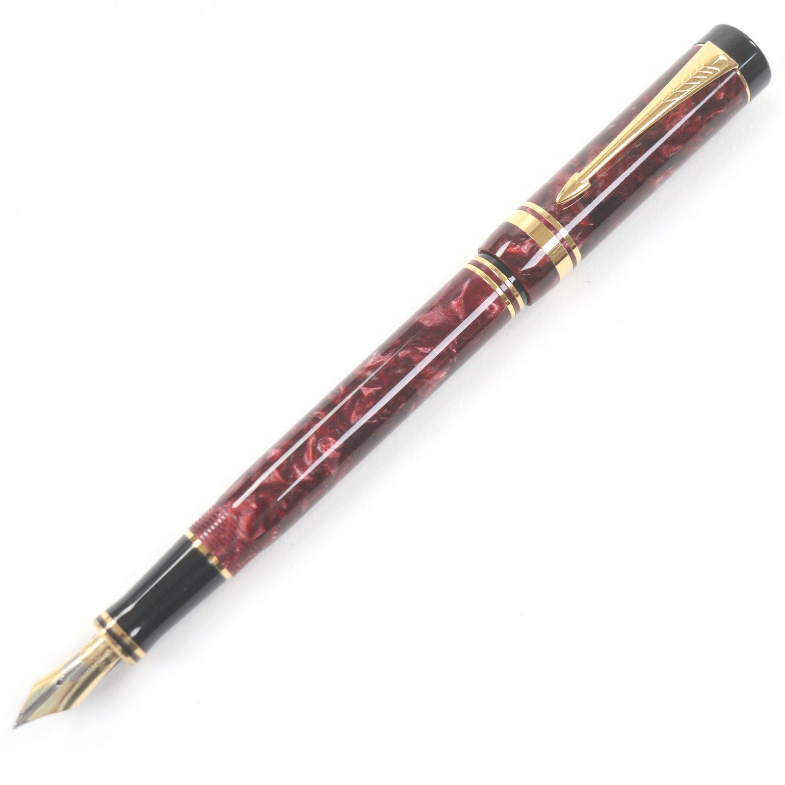 美品□PARKER パーカー ヴィンテージ デュオフォールド 18K Fニブ センテニアル 旧型 万年筆 マーブルレッド ゴールド ケース付き メンズ【中古】