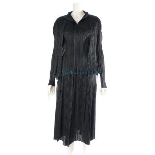 【PLEATS PLEASE ISSEY MIYAKE】プリーツプリーズ イッセイミヤケ ネイビー系 ロングコート 超音波カット レディース 3【c044】