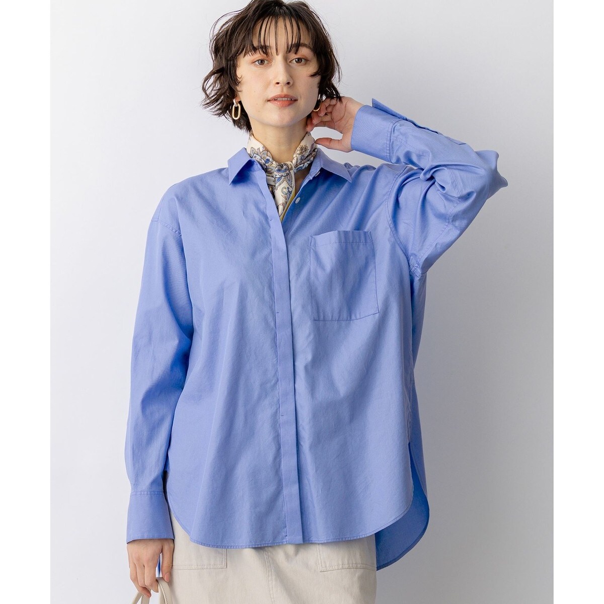 イタリアの老舗ファブリックメーカーCANCLINI社の上質な素材を使用した、洗練された大人のレギュラーカラーシャツが登場しました。ゆったりとしたルーズフィットなシルエットながら、バックスタイルに美しいフォルムが出るように計算されており、どこから見ても抜かりない着こなしを叶えます。 襟を少し後ろに抜いて着こなせば、こなれた大人の女性らしい雰囲気を演出できます。今年らしいフレアパンツやワイドパンツと合わせれば、洗練されたカジュアルスタイルが完成。Tシャツなどの上に羽織りとしても活躍し、着こなしの幅が広がります。オンオフ問わず、幅広いシーンで上品なスタイリングをお楽しみいただけます。一枚で上品に、レイヤードでカジュアルにと、様々な表情をお楽しみいただけます。カラーは、清潔感のあるホワイト(#001)、爽やかな印象のブルー(#070)、顔色を明るく見せるピンク×サックスストライプ(#112)、華やかなイエロー×サックスストライプ(#140)、そして澄んだ空のようなサックス×ピンクストライプ(#172)の5色展開です。