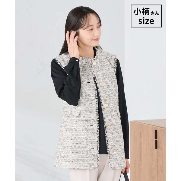 フェミニン派もハンサム派にもおすすめのツイードジレ。