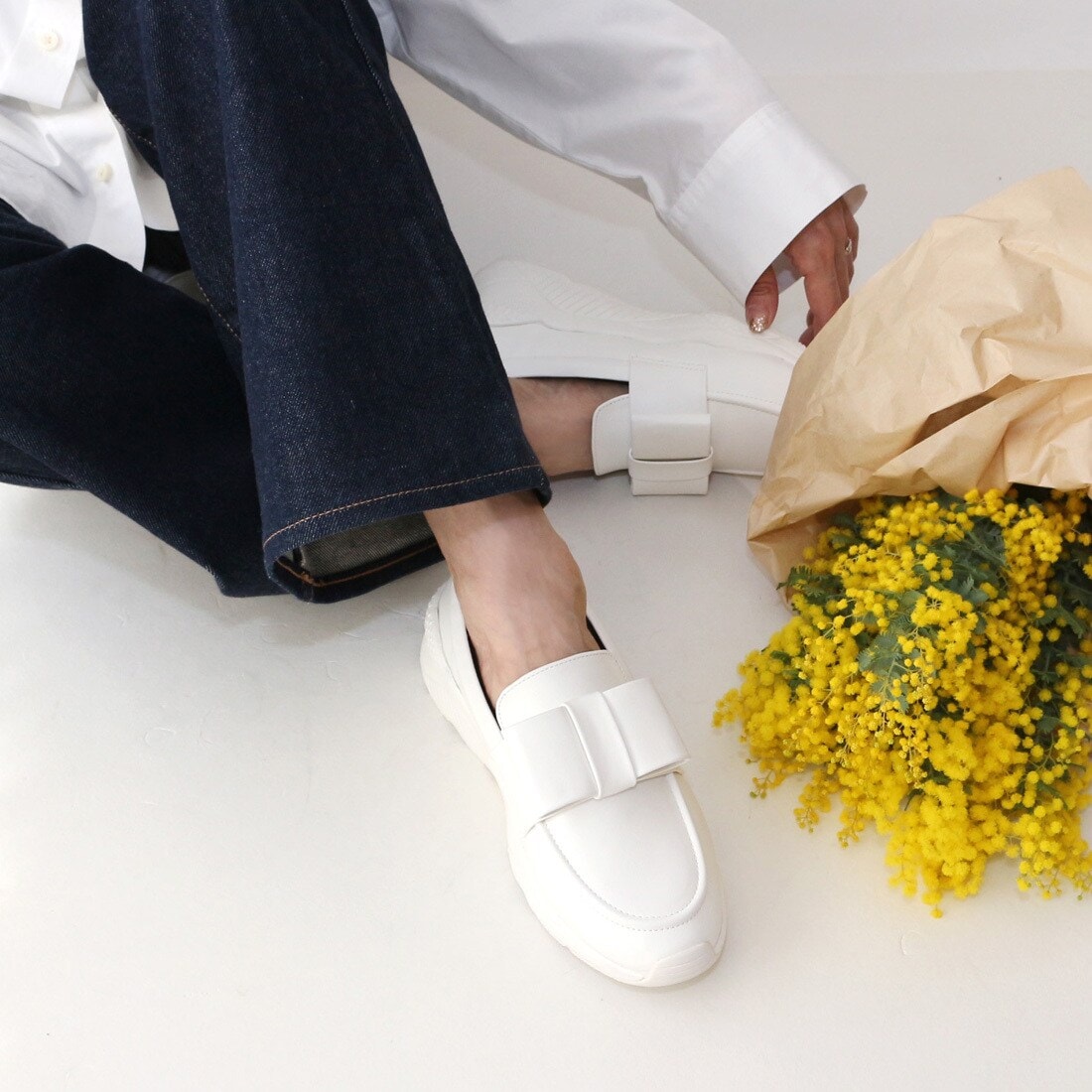 【新品】ホワイト リボン付きローファー 23.0㎝