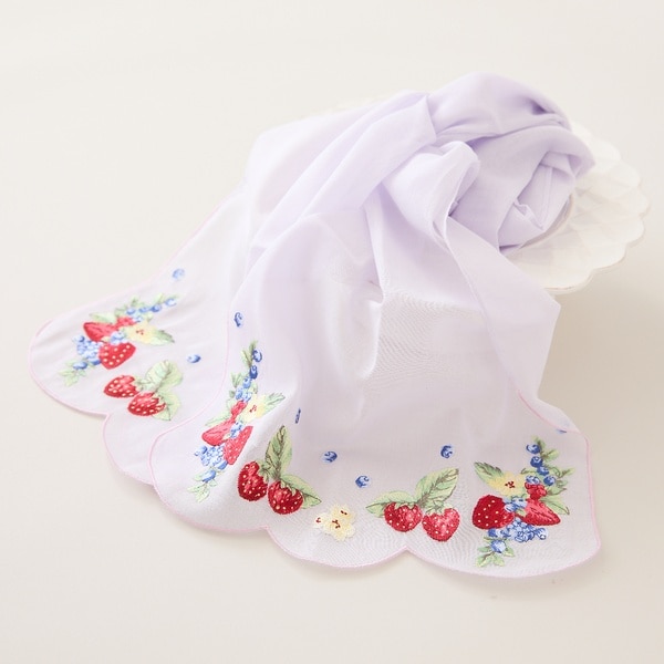 ・スカラップ刺繍とフルーツ柄の刺繍が可愛らしいアイテム