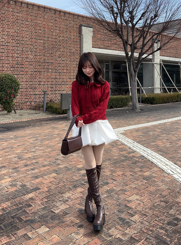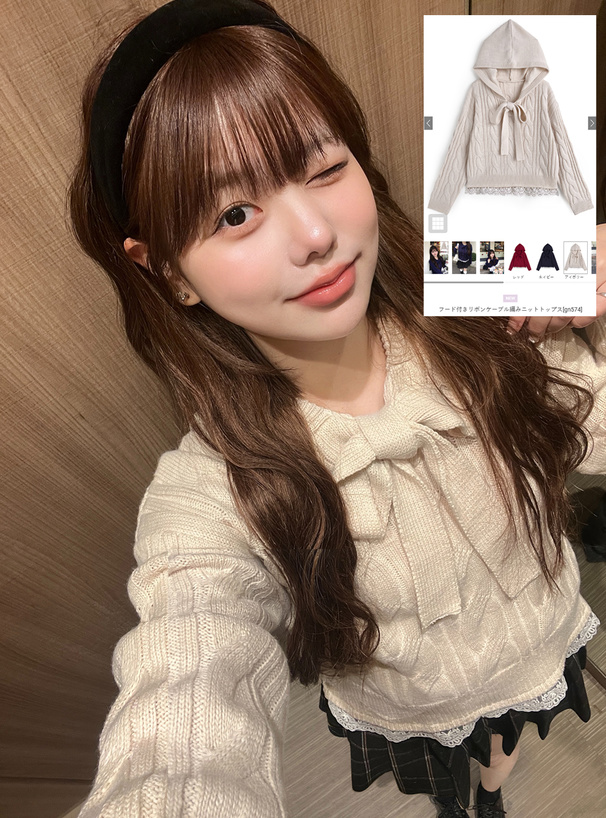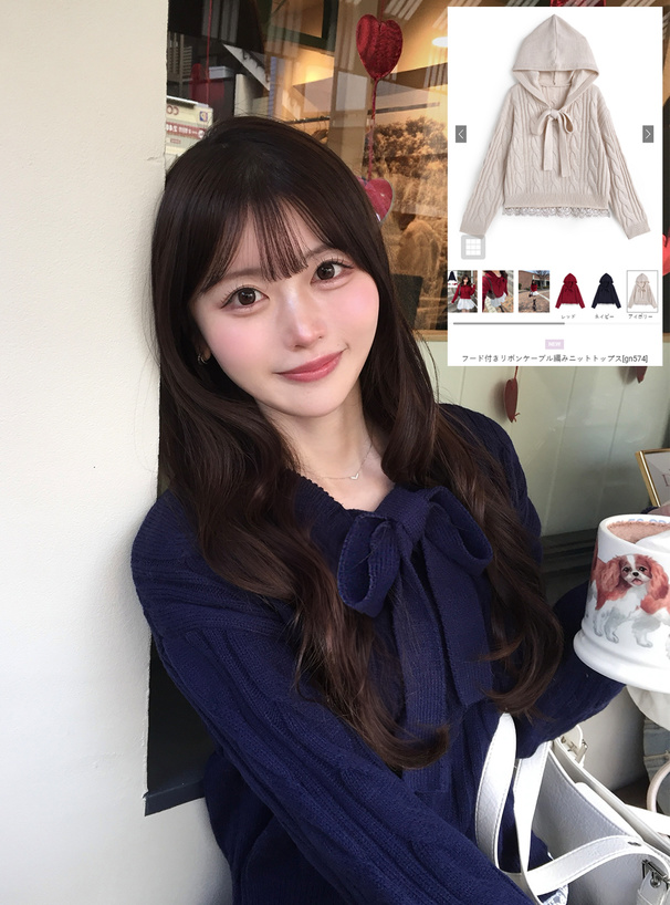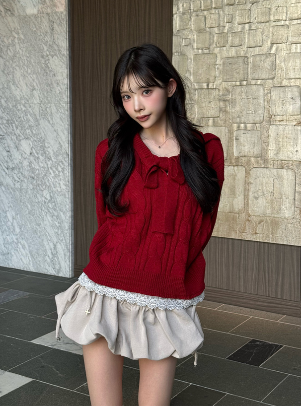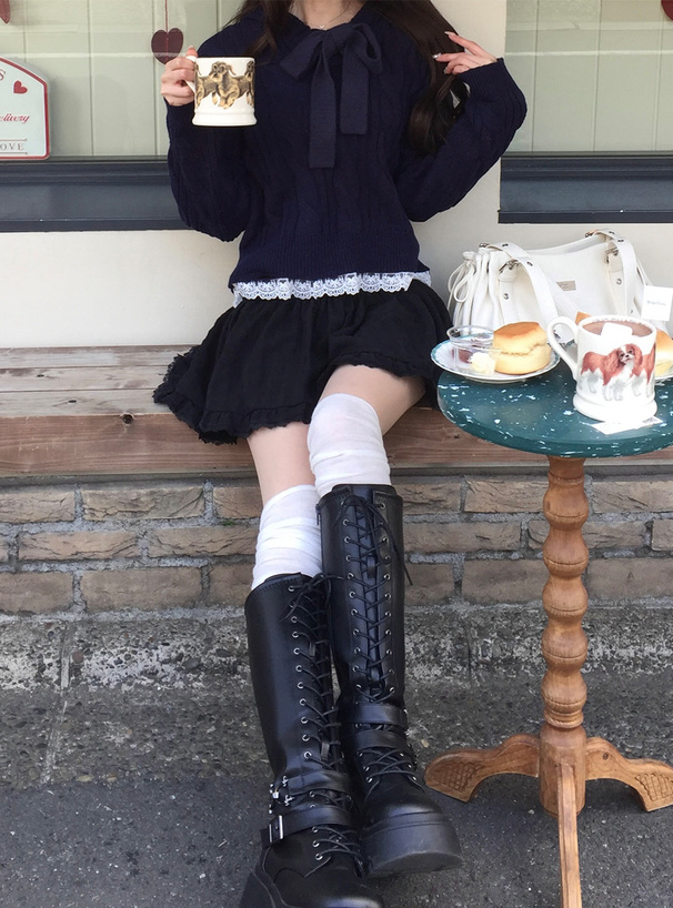 首元のリボンや裾部分にレースをあしらうことで、ガーリー要素をプラス。