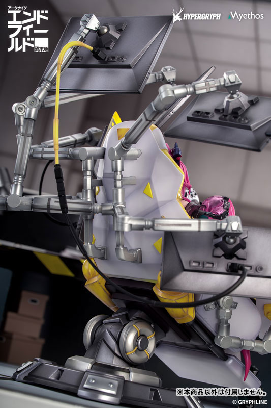 イヴォンヌはエルゴノミクスチェアにもたれ、幾重にも重なるディスプレイに囲まれた姿で立体化。