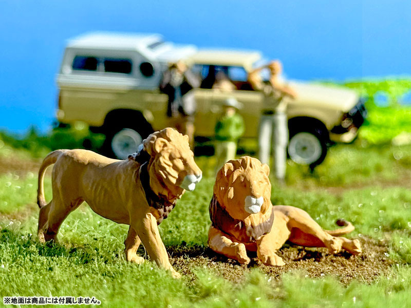 海洋堂より生物造形の第一人者「松村しのぶ」氏が動物フィギュアを監修。生き生きとした動物たちが1/64スケールで登場します。たてがみが凛々しいライオンと獲物を狙うハイエナの造形は、我々をアフリカのサファリへと誘います。クルマとその周辺が映える写真をSNSに投稿して、#カースナップや#TLVを盛り上げましょう。