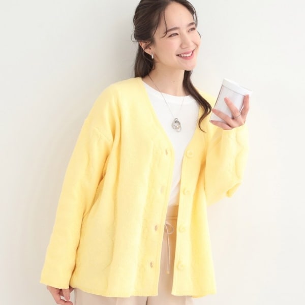 【洗濯機可S-LL】切替デザインで上品見え お袖編み柄ニット