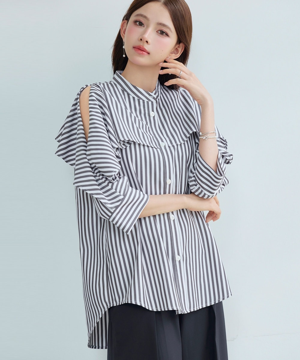 SHENERY ヨークフリルストライプチュニックブラウス シーナリー