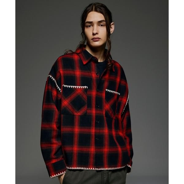 定番のチェック柄にステッチを加えたシャツ。