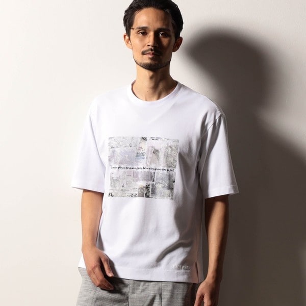 油絵調の抽象画デザインが存在感抜群のクルーネックTシャツ。