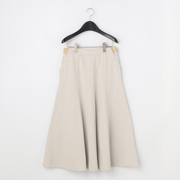 マリンパンツを思わせる本開き仕様のポケットデザインで、パール調ボタンがデザインのアクセントです。
