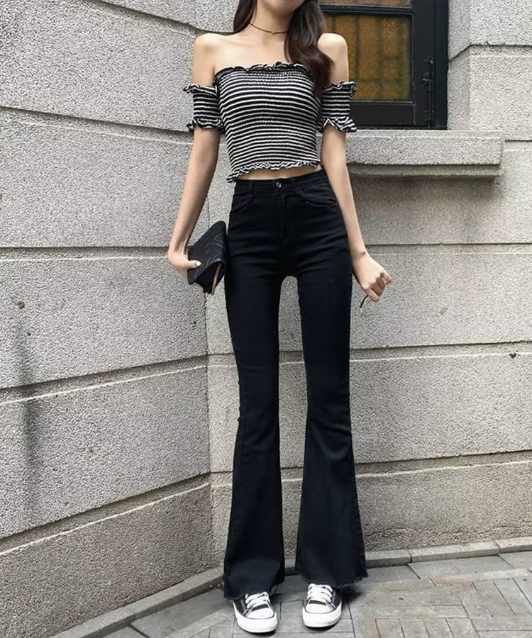 ・太ももはすっきり、裾に向かって広がる計算されたフレアシルエット